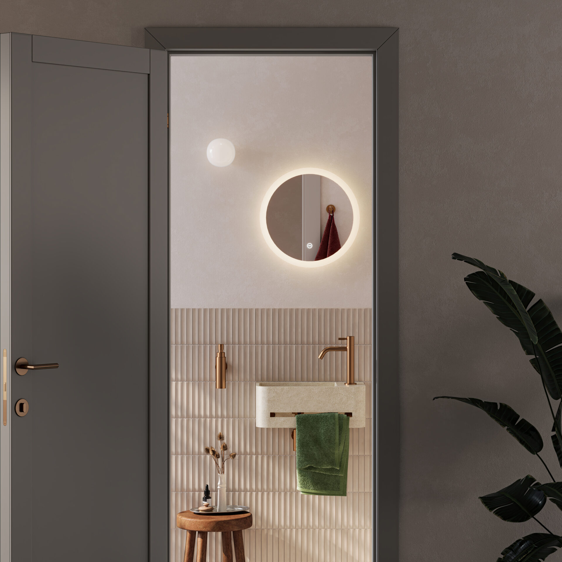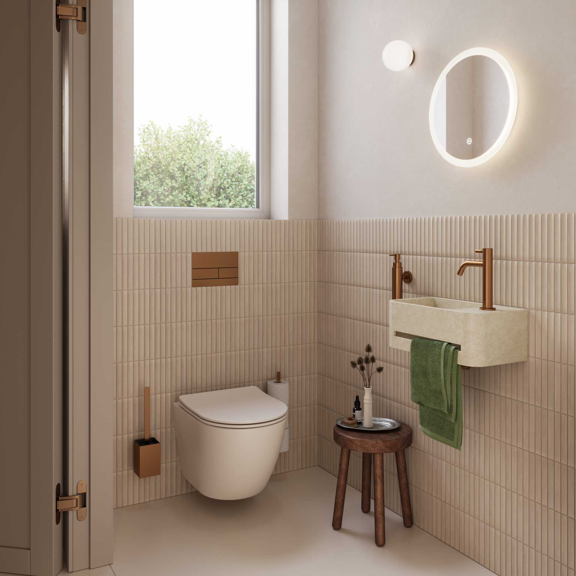 met praktische handdoekhouder. Inclusief afsluitbare plug met cover in prachtig Microrazzo.