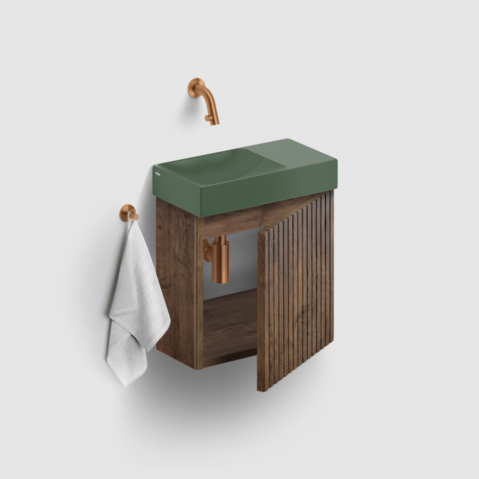 Unser bekanntestes Handwaschbecken mit dem typischen ovalen Clou-Ablaufgarnitur lässt sich ganz einfach auf dem Verti-Unterschrank montieren. Flush 3 ist in verschiedenen Materialien und Farben erhältlich. Finden Sie schnell Ihre perfekte Kombination!