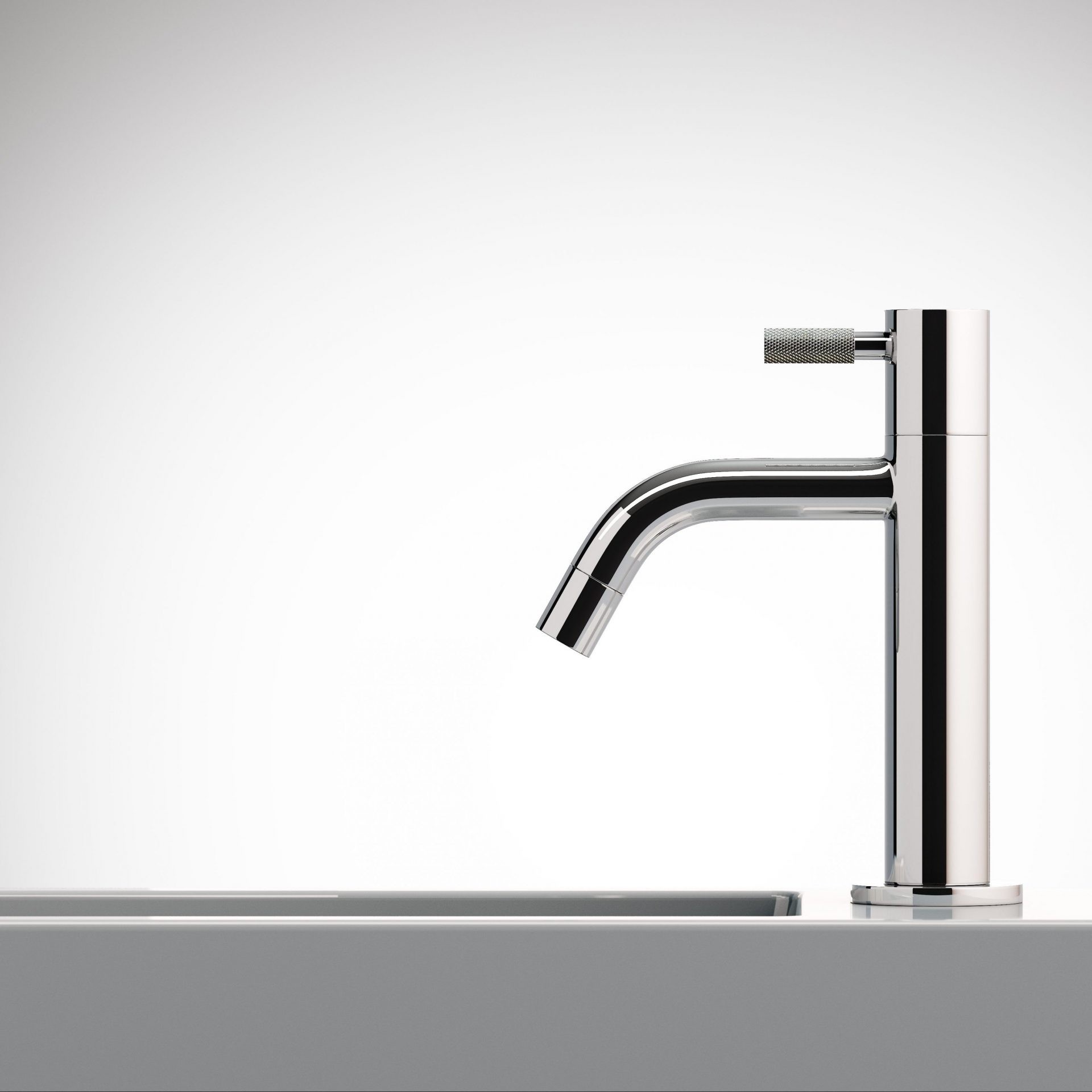 Auch das Design der Waschtischarmatur setzt auf Schlichtheit. Alles Überflüssige wurde weggelassen und nur die reine Form bleibt übrig. Sie öffnen diese Armatur, indem Sie den Griff am Auslauf drehen. Mit dem separaten Hebel können Sie die Temperatur regulieren.