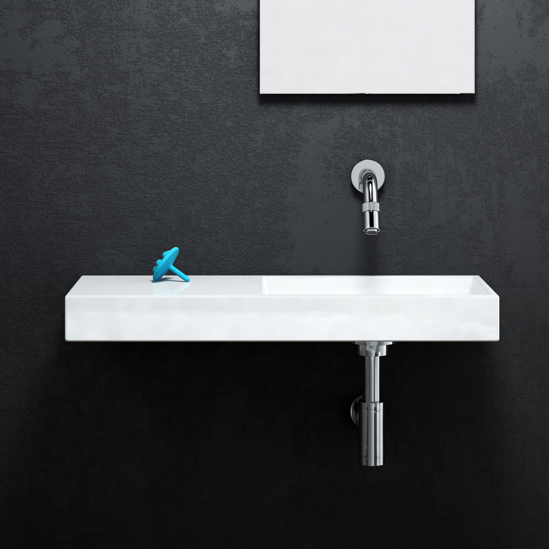 Die ausgewogene Asymmetrie des Mini Wash Me gibt es auch als Plus-Handwaschbecken. Die perfekte Zwischengröße zwischen Handwaschbecken und Waschtisch. Erhältlich in linker und rechter Ausführung.