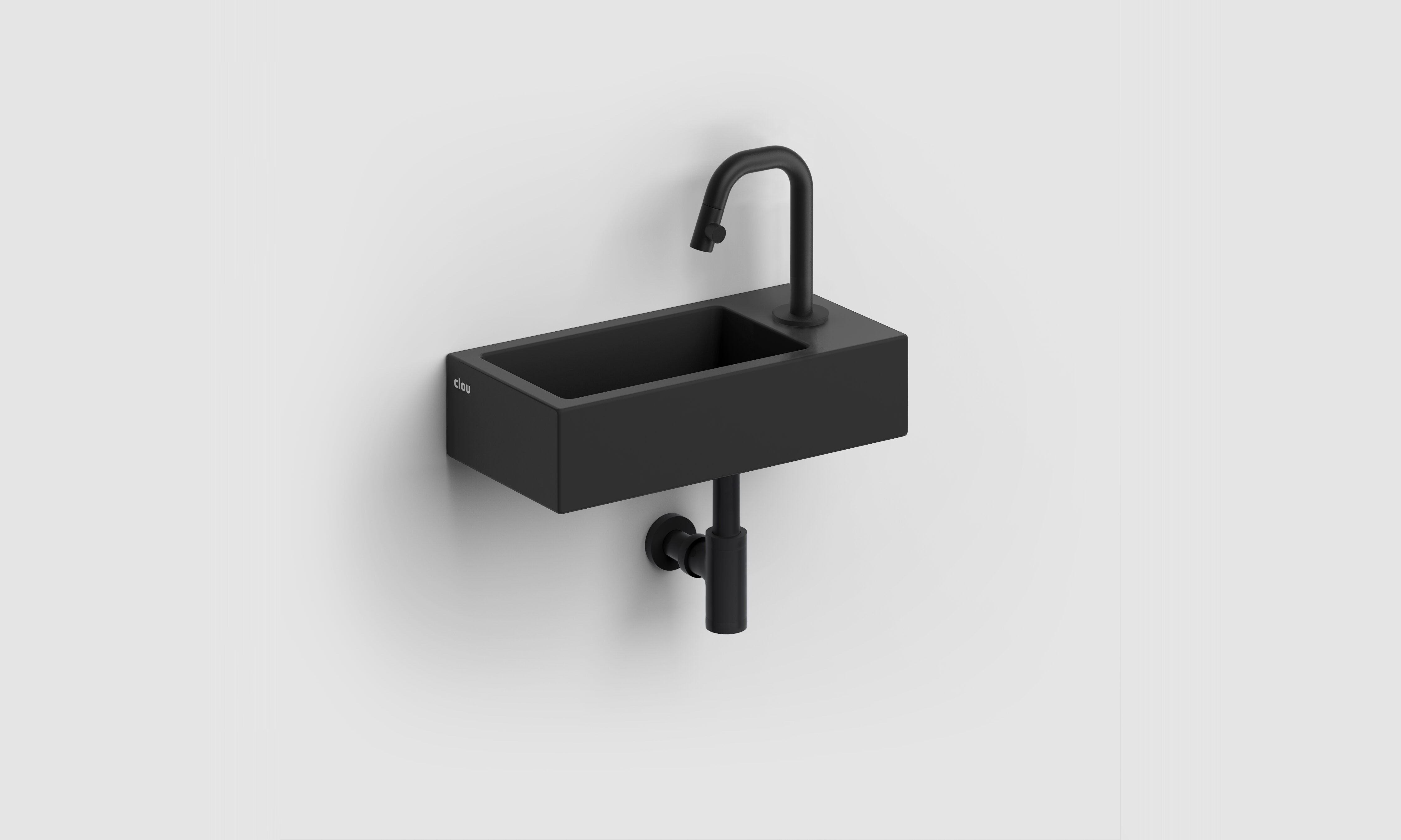 Flush 3 Handwaschbecken 36cm, mit Hahnloch und Ablaufgarnitur, rechts, Keramik matt schwarz