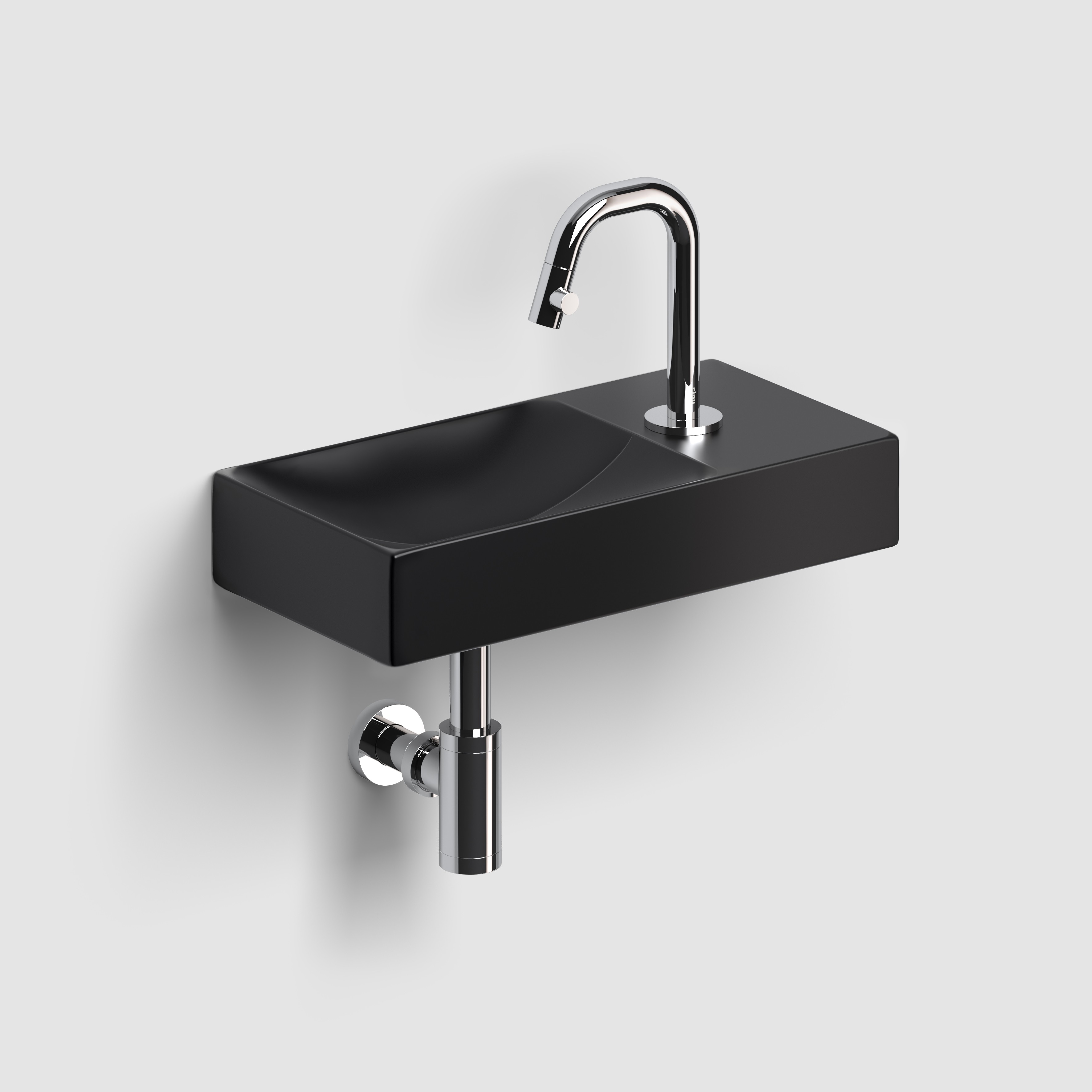 Mattschwarze Handwaschbecken passen am besten zu NCS 8500-N, NCS 8801-R51B und RAL 9004.