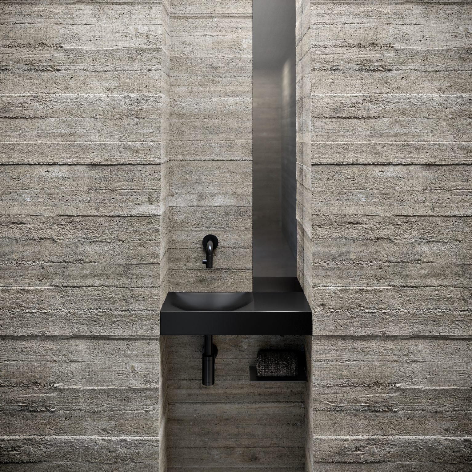 Mattschwarze Handwaschbecken passen am besten zu NCS 8500-N, NCS 8801-R51B und RAL 9004.