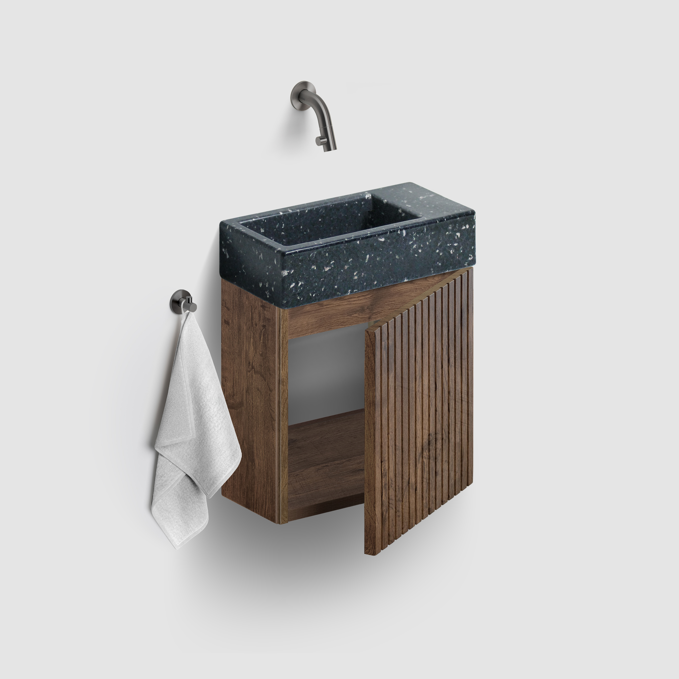 Ecorazzo Flush 3 Handwaschbecken 36cm, rechts, rezykliert, PE Galaxie Schwarz