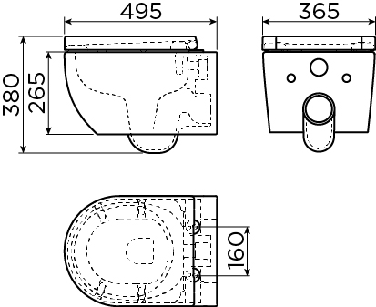 randlose WC, wandhängend, 49 cm, matt weiß, mit dicker Sitz mit Deckel
