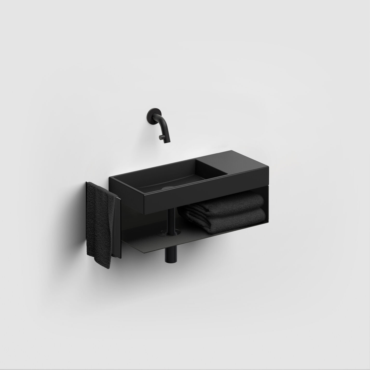 Offenen Schrank mit Handtuchhalter für Mini Wash Me 45cm rechts / Vale 45cm rechts, Edelstahl schwarz pulverbeschichtet. Wandmontage. Befestigungssatz mit enthalten.