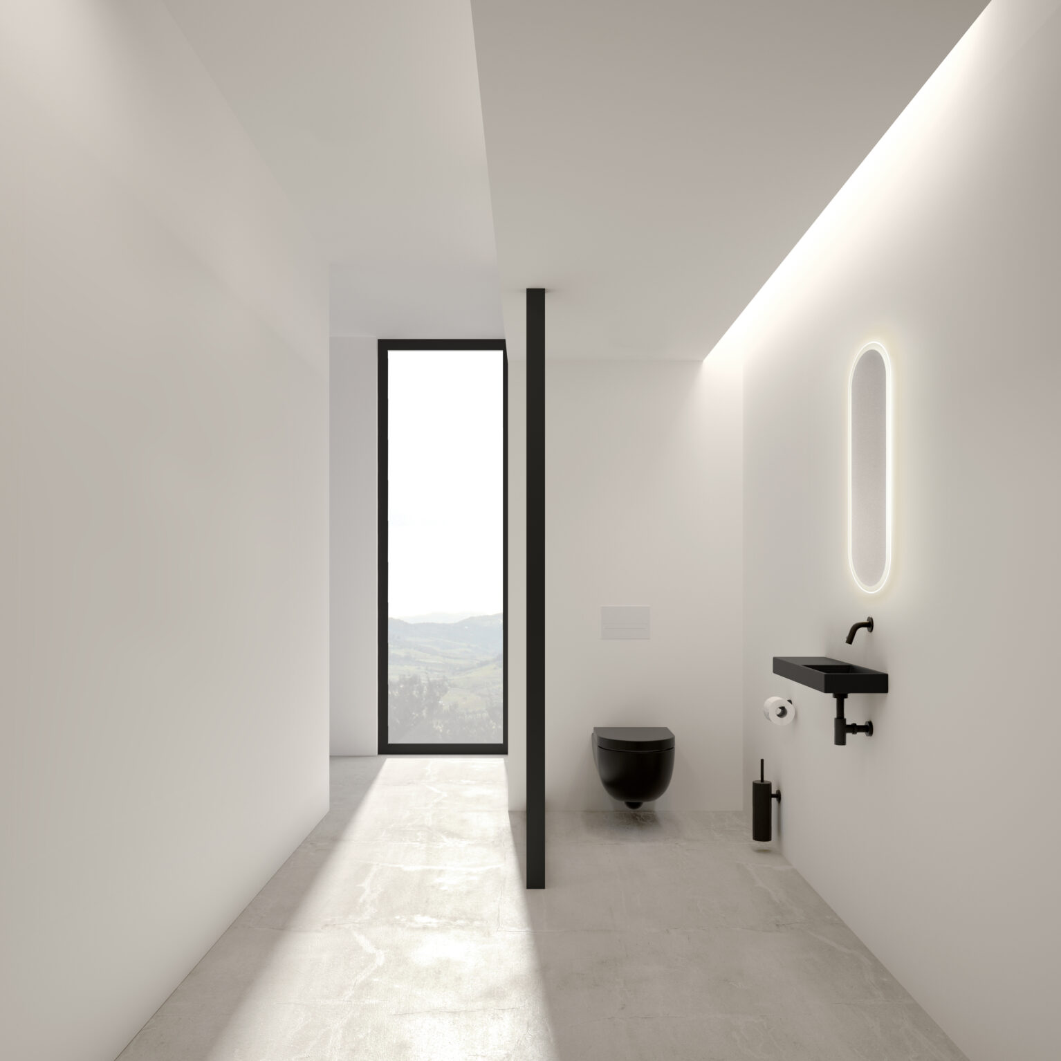Matt black handbasins correspond best to NCS 8500-N, NCS 8801-R51B and RAL 9004.