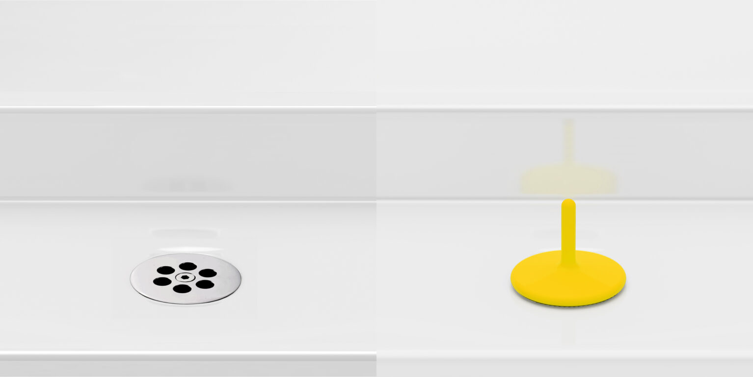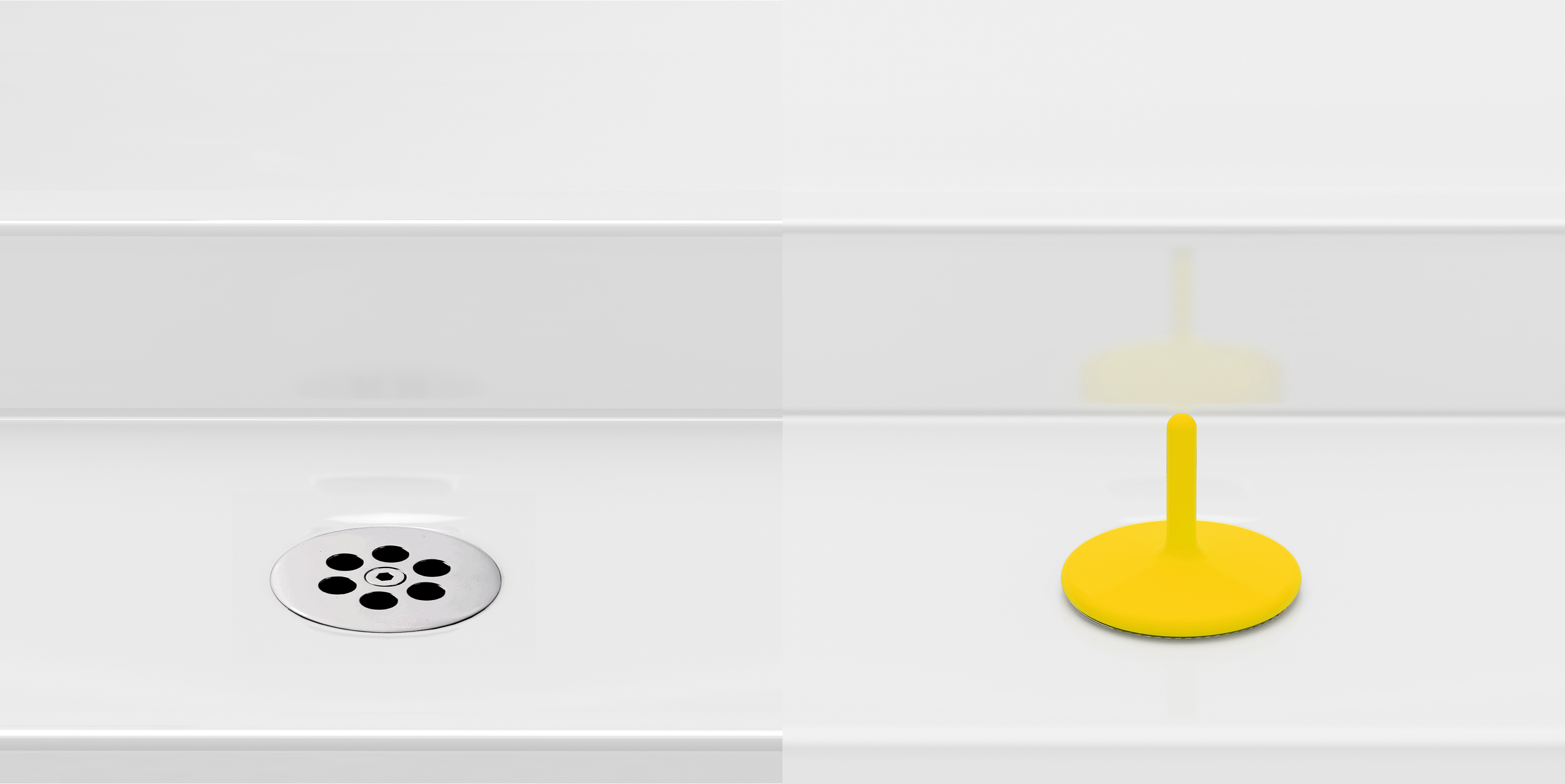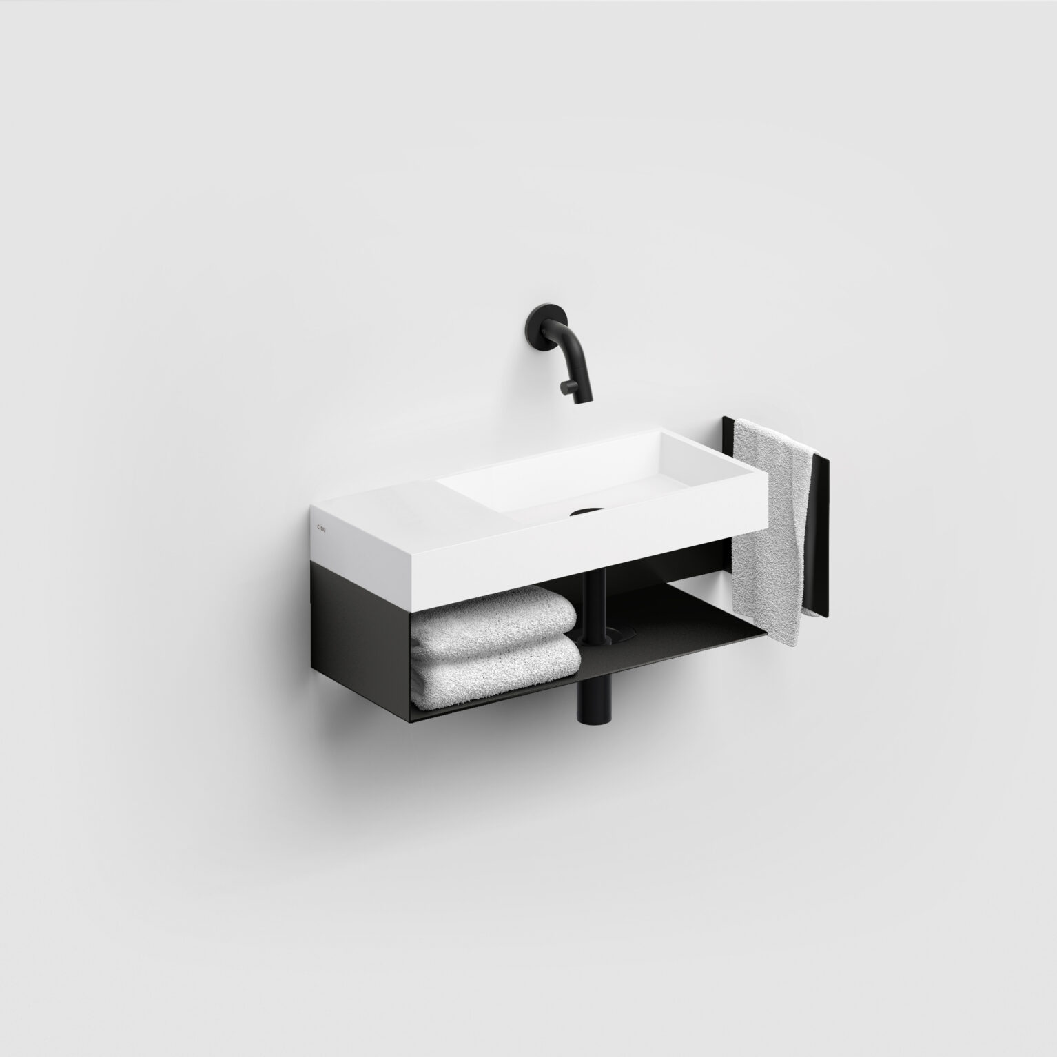 Mini Wash Me wash-hand basin with pretreated tap hole, without drain, left, aluite. Suitable for wall mounting and counter mounting. Special smaller drains must be ordered (view ‘complete your product’). A Plus variant is available for the larger toilet spaces.