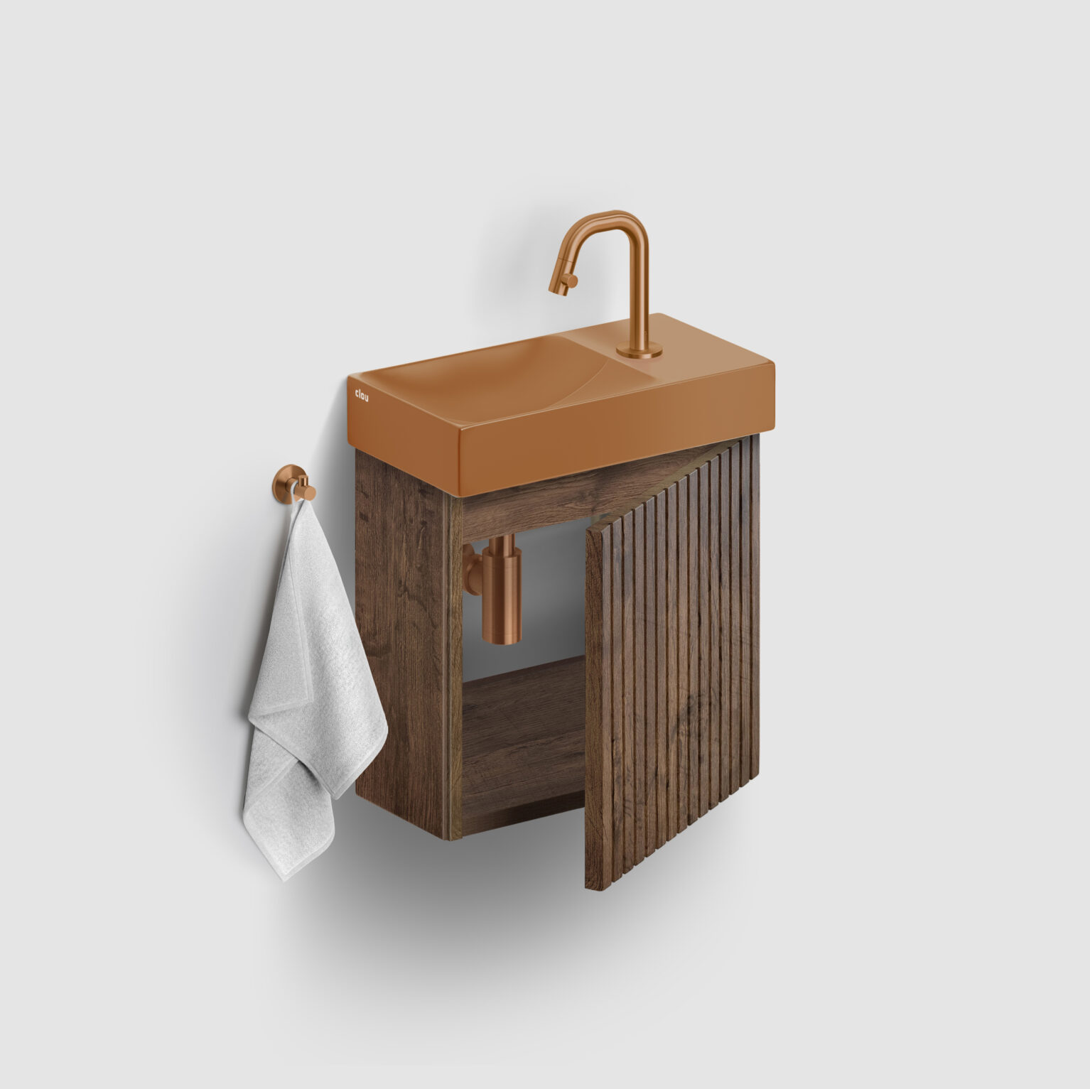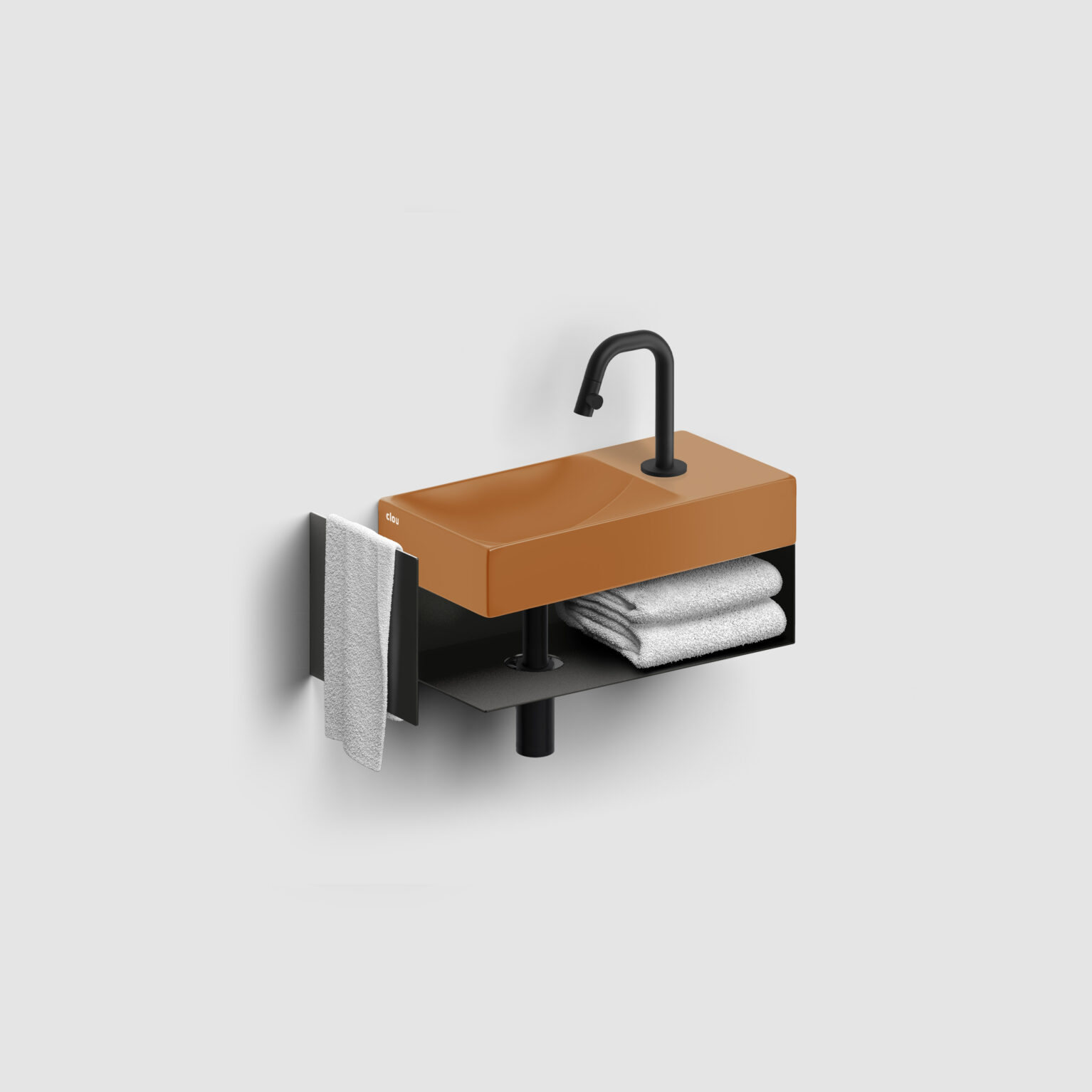 Vale handbasin right 38cm, with tap hole, matt Italian sand ceramics