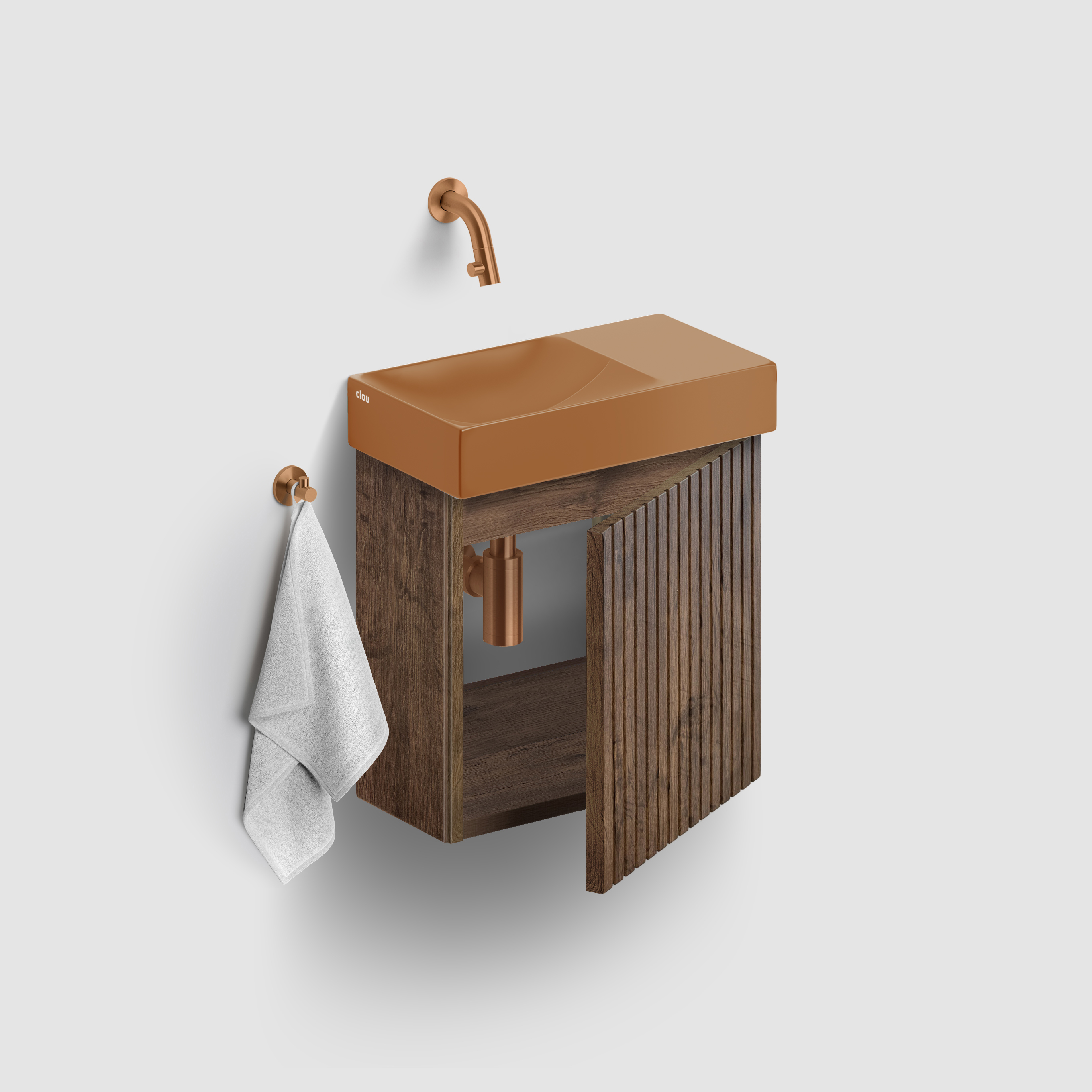 Vale handbasin series, with integrated drain and trap connection. Suitable for wall mounting and counter mounting. Not closable.