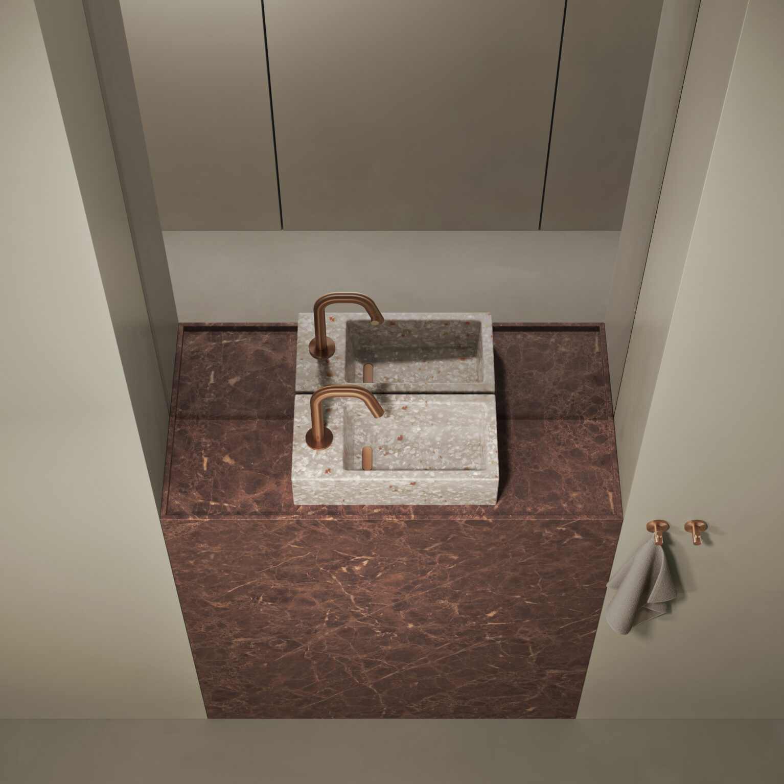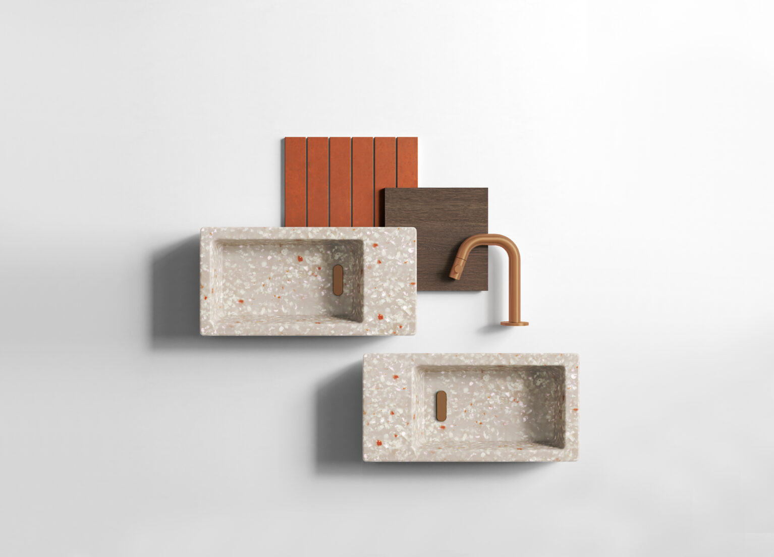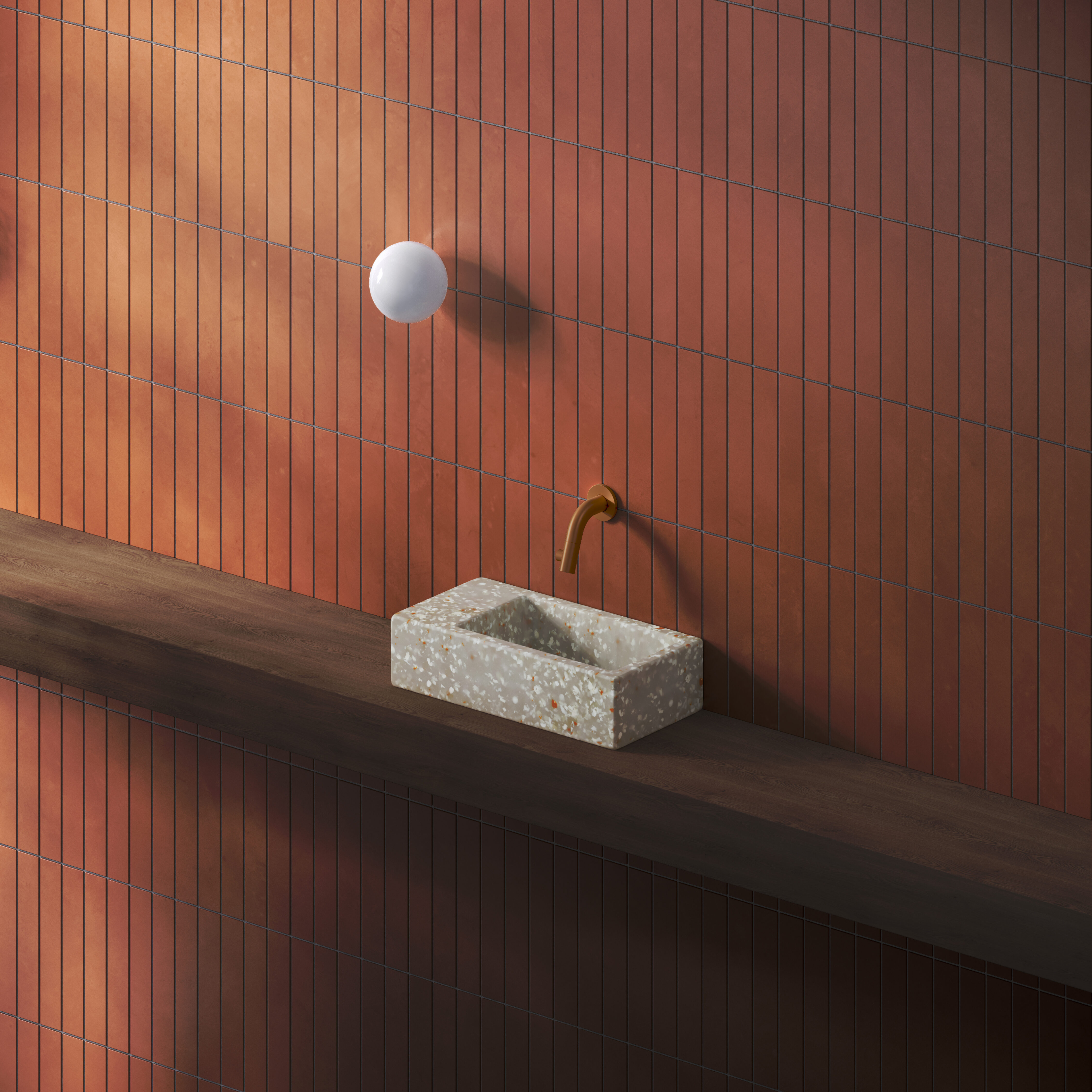 Ecorazzo Flush 3 handbasin 36cm, left, recycled, terra light PE