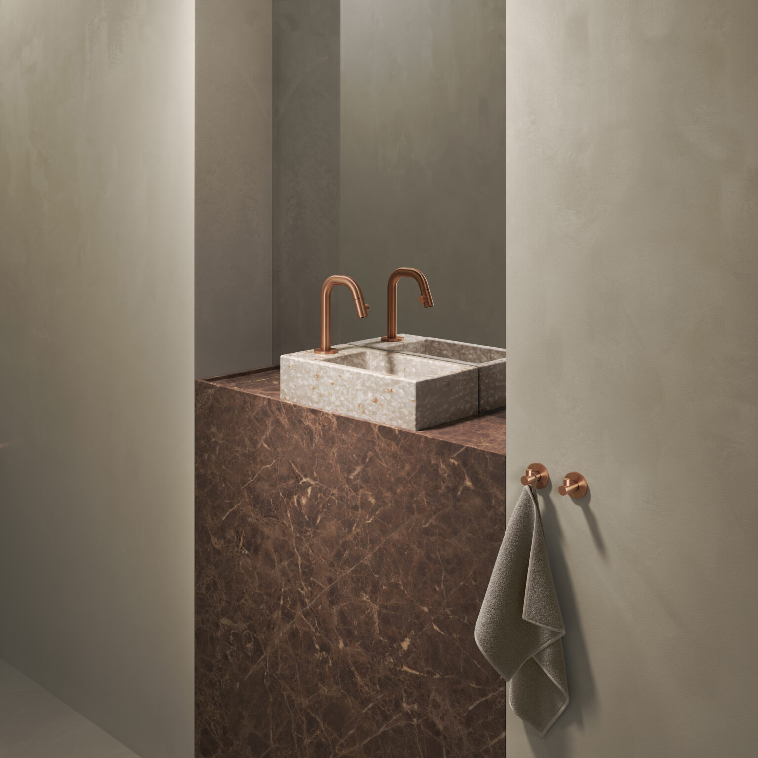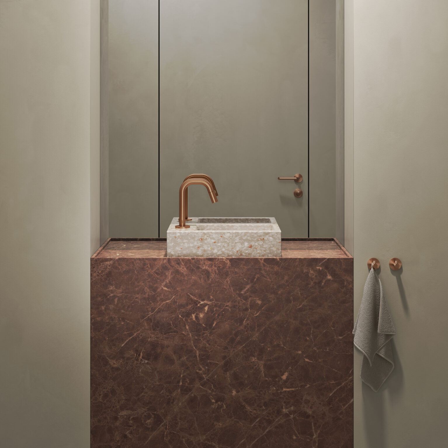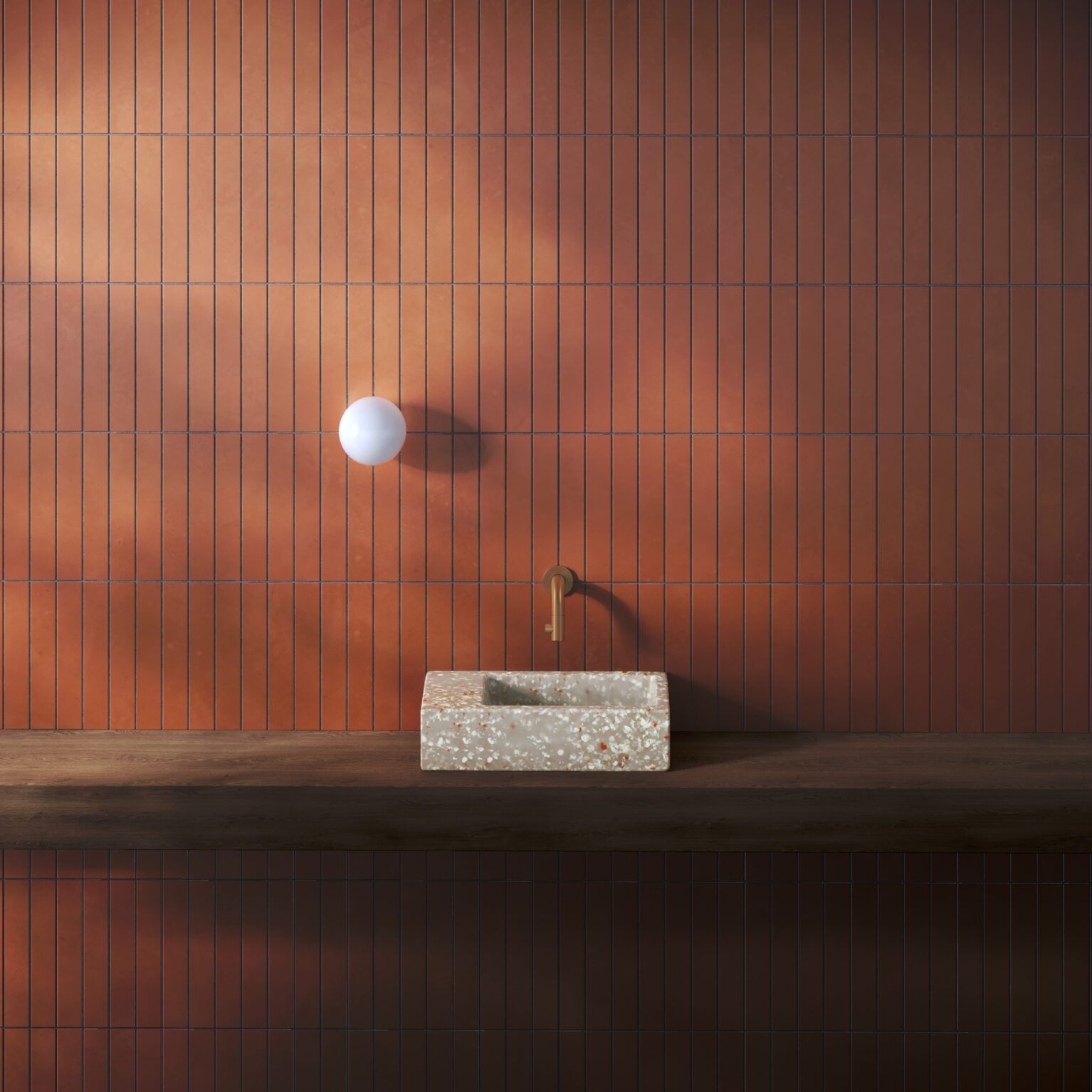 Ecorazzo Flush 3 handbasin 36cm, left, recycled, terra light PE