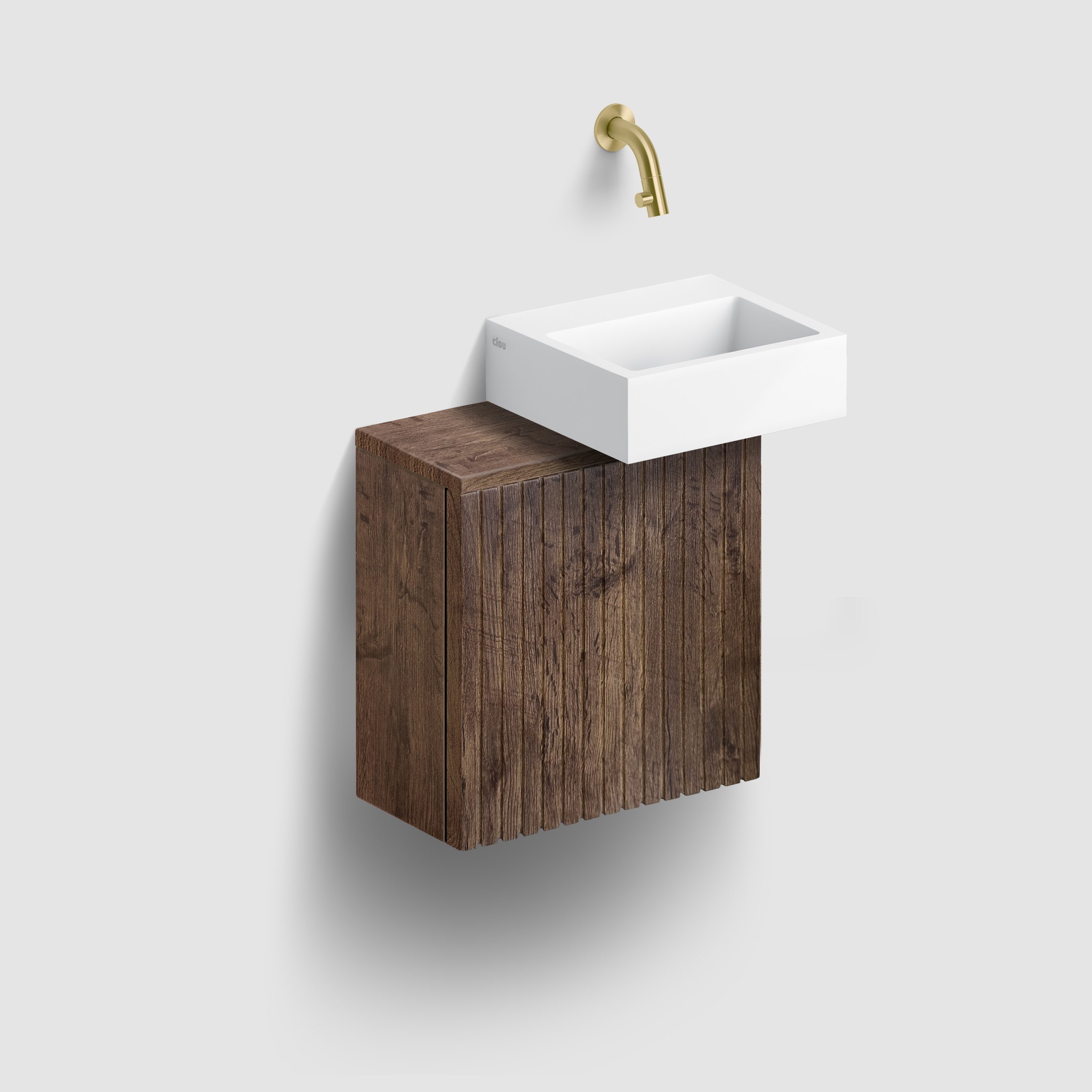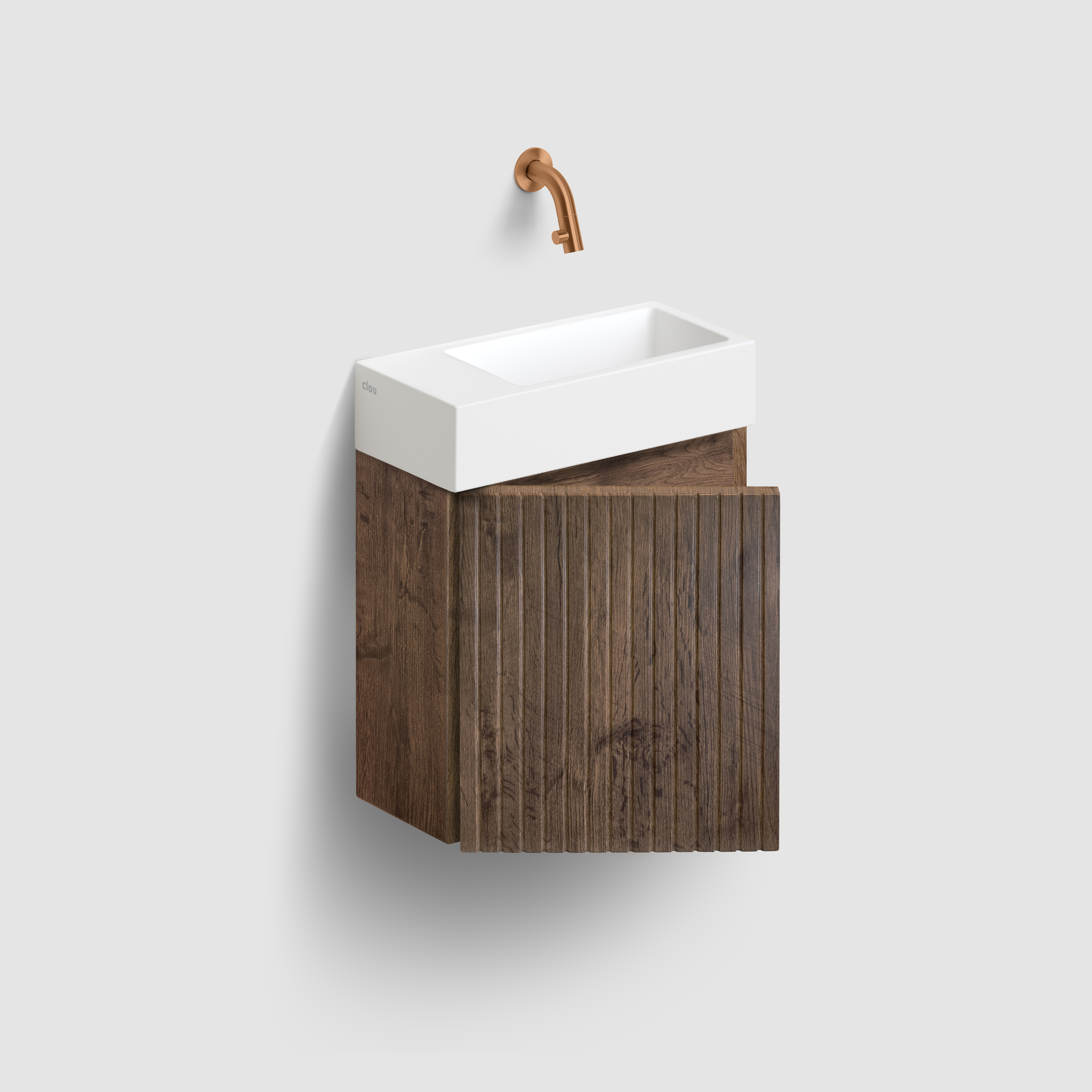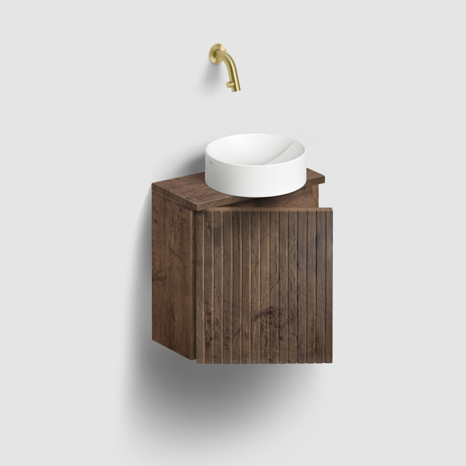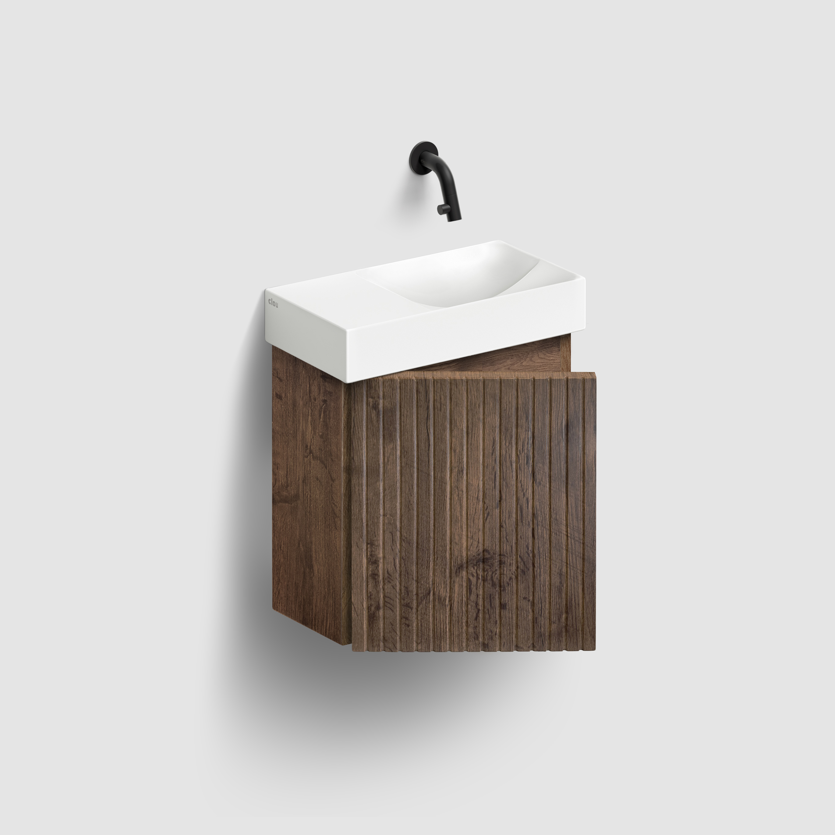 Verti handbasin cabinet with ribbed door, soft-closing, dark oak, left