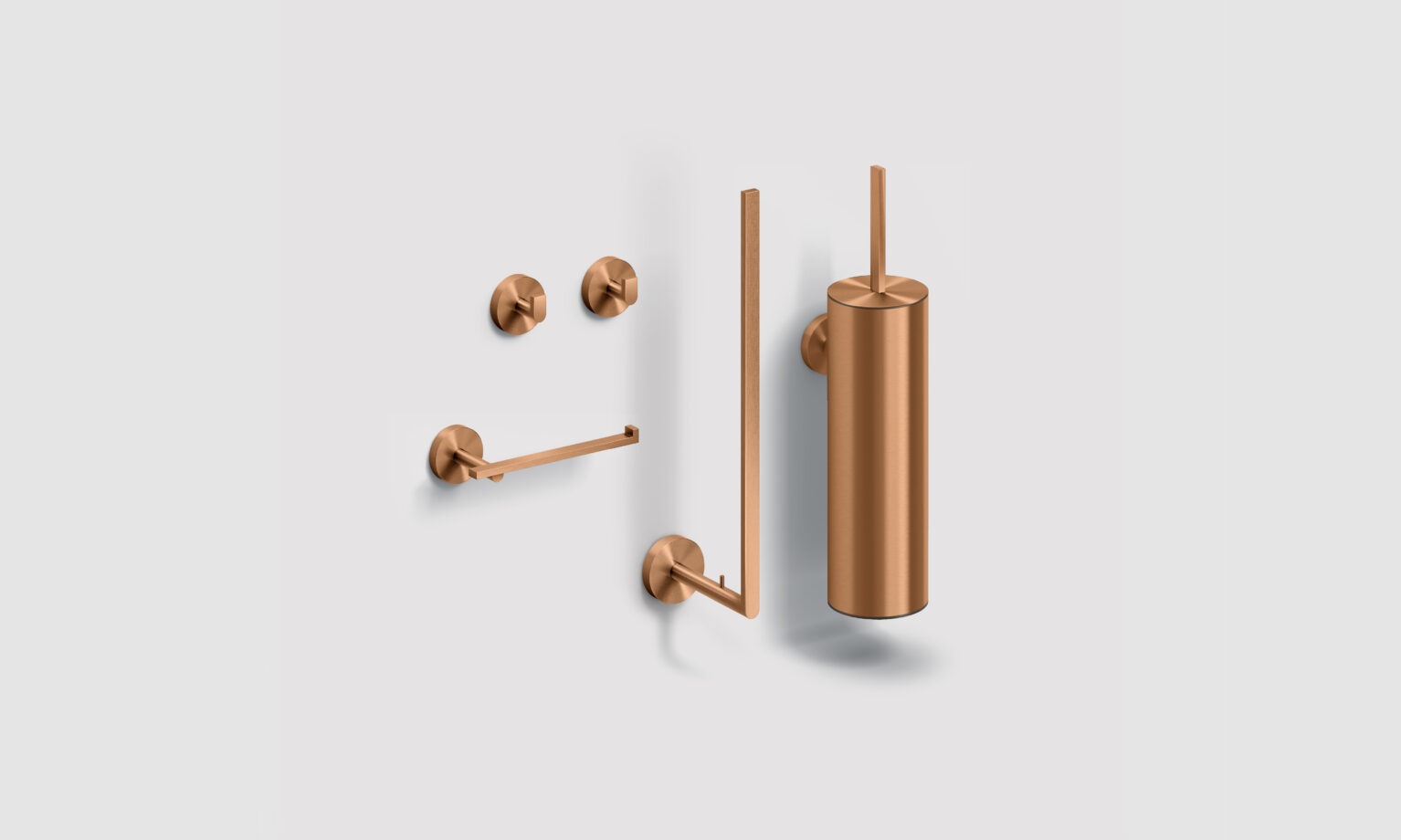 Flat toilet accessories set, consisting of: toilet paper holder (CL/09.02030.83) + backup toilet paper holder (CL/09.02035.83) + toilet brush holder (CL/09.02041.83) + set of 2 hooks (CL/09.02064.83).