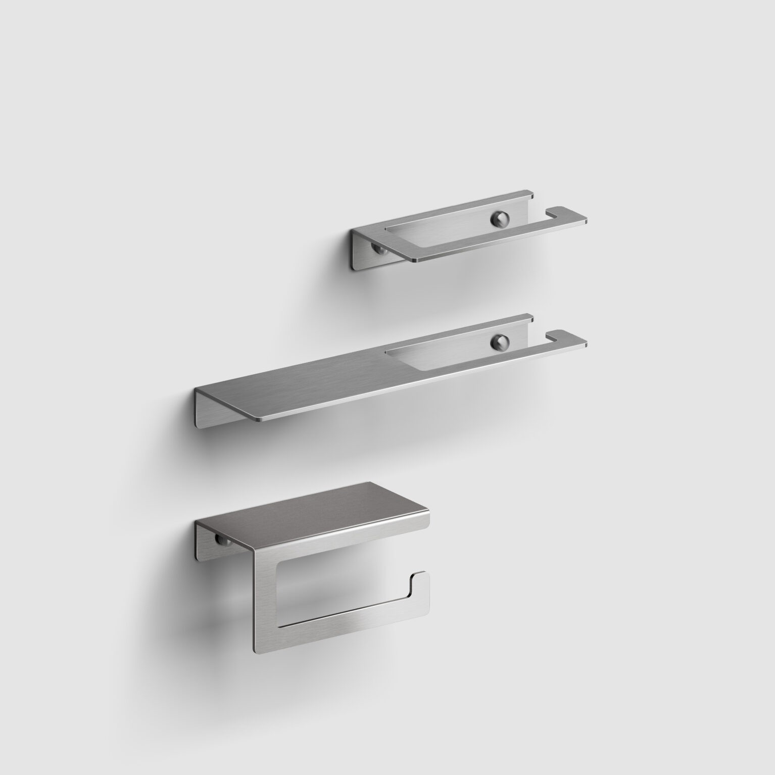 Fold accessories in chrome, stainless steel, matt white or matt black powder coating, or gold, bronze or gun metal brushed PVD.