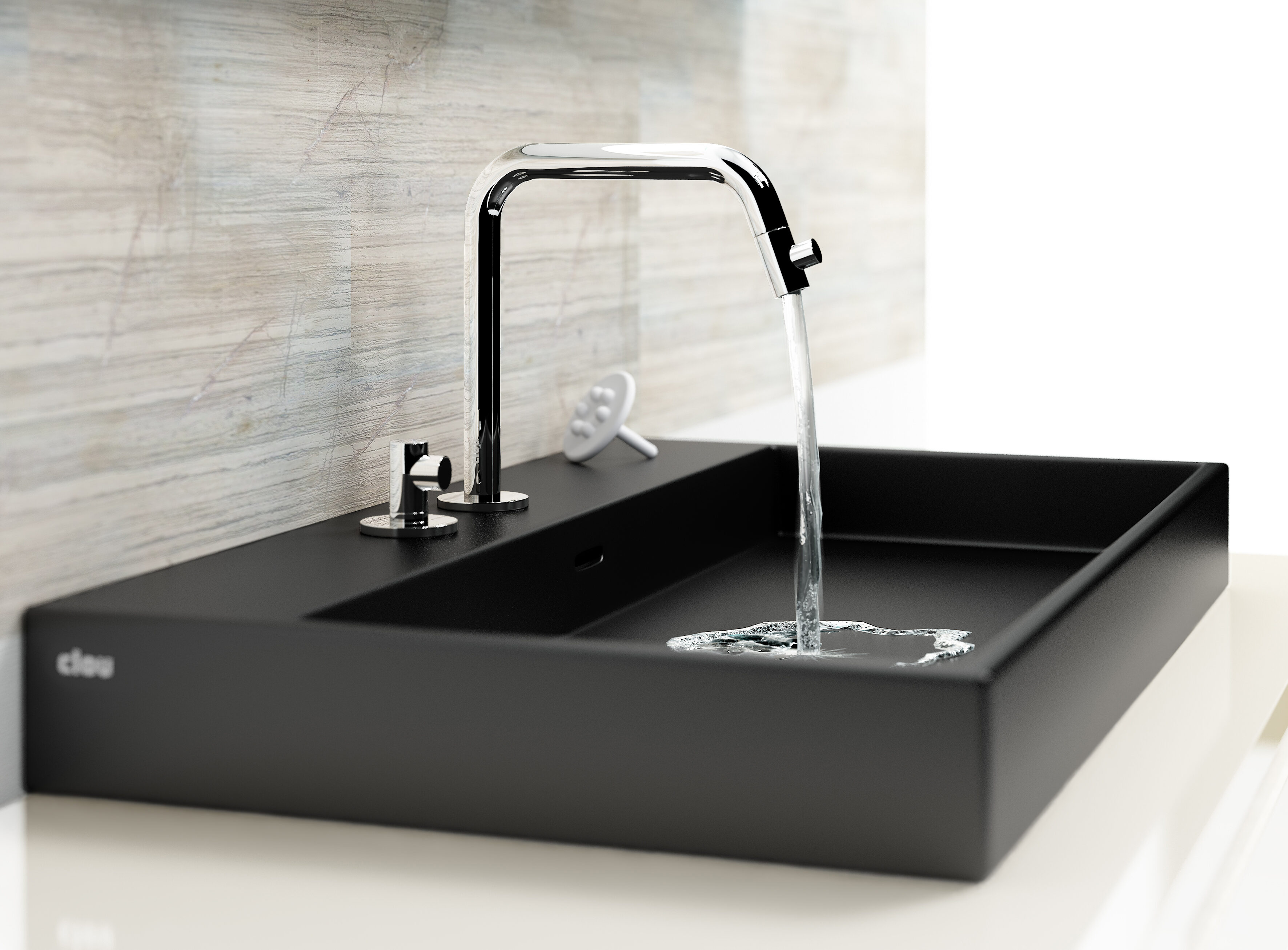 Wash Me lavabo, avec 3 points d’amorçage, sans bonde, céramique noir mat. À suspendre ou à poser.