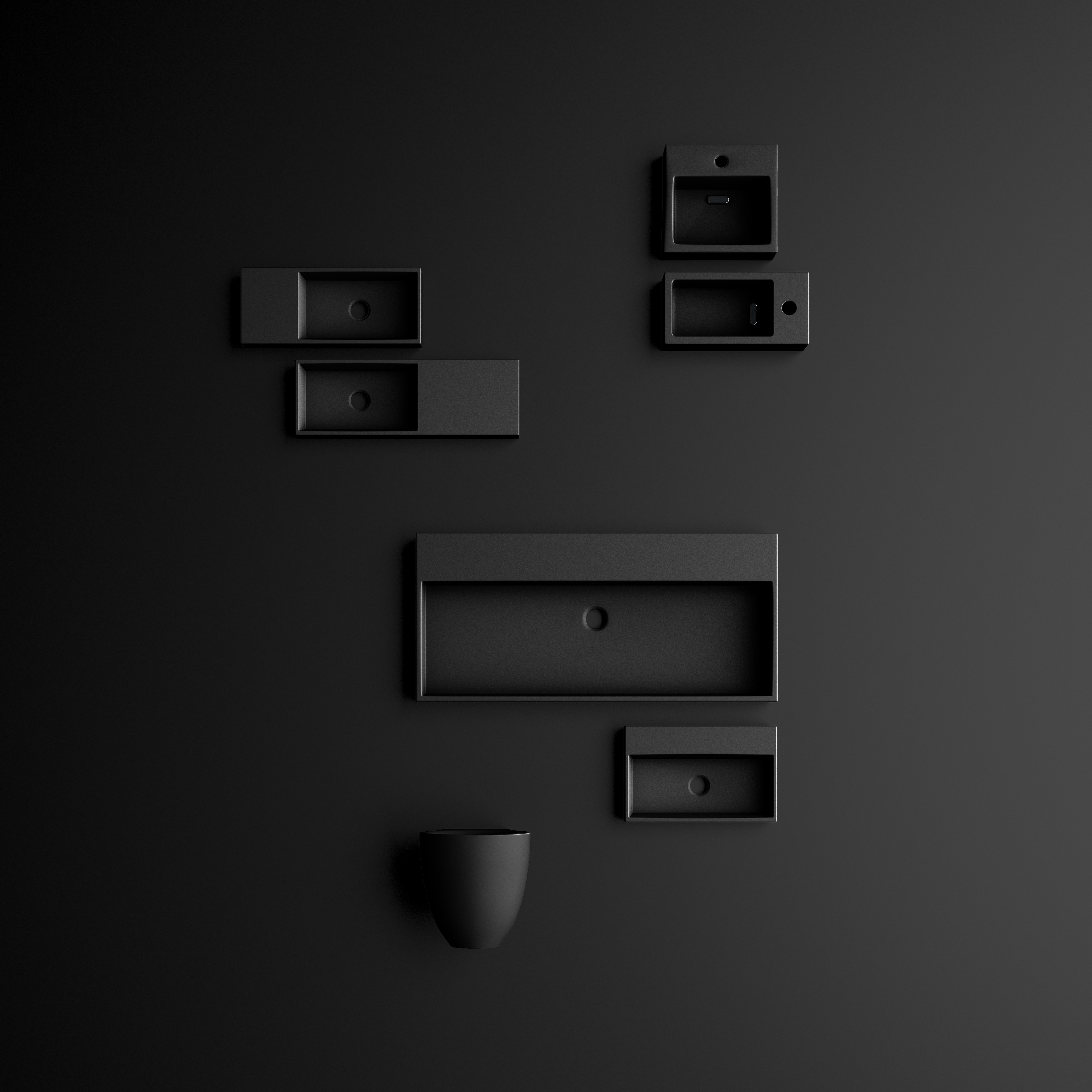 Les lave-mains noir mat correspondent le mieux au NCS 8500-N, NCS 8801-R51B et RAL 9004.
