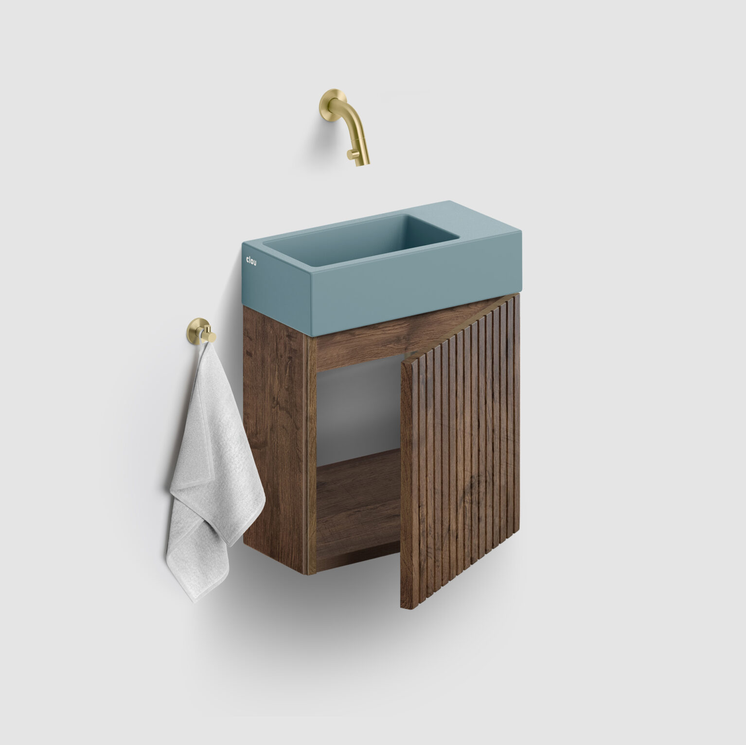 Flush 3 lave-mains à droite 36cm, sans trou pour robinet, bonde libre inclus, céramique bleu mat
