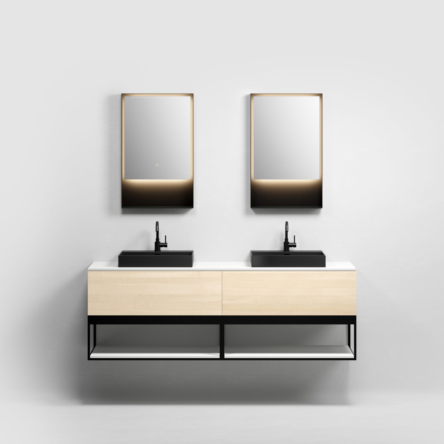 Look at Me miroir, avec éclairage LED 2700K, IP44, avec cadre en noir mat. Les bondes LED sont remplacable.
