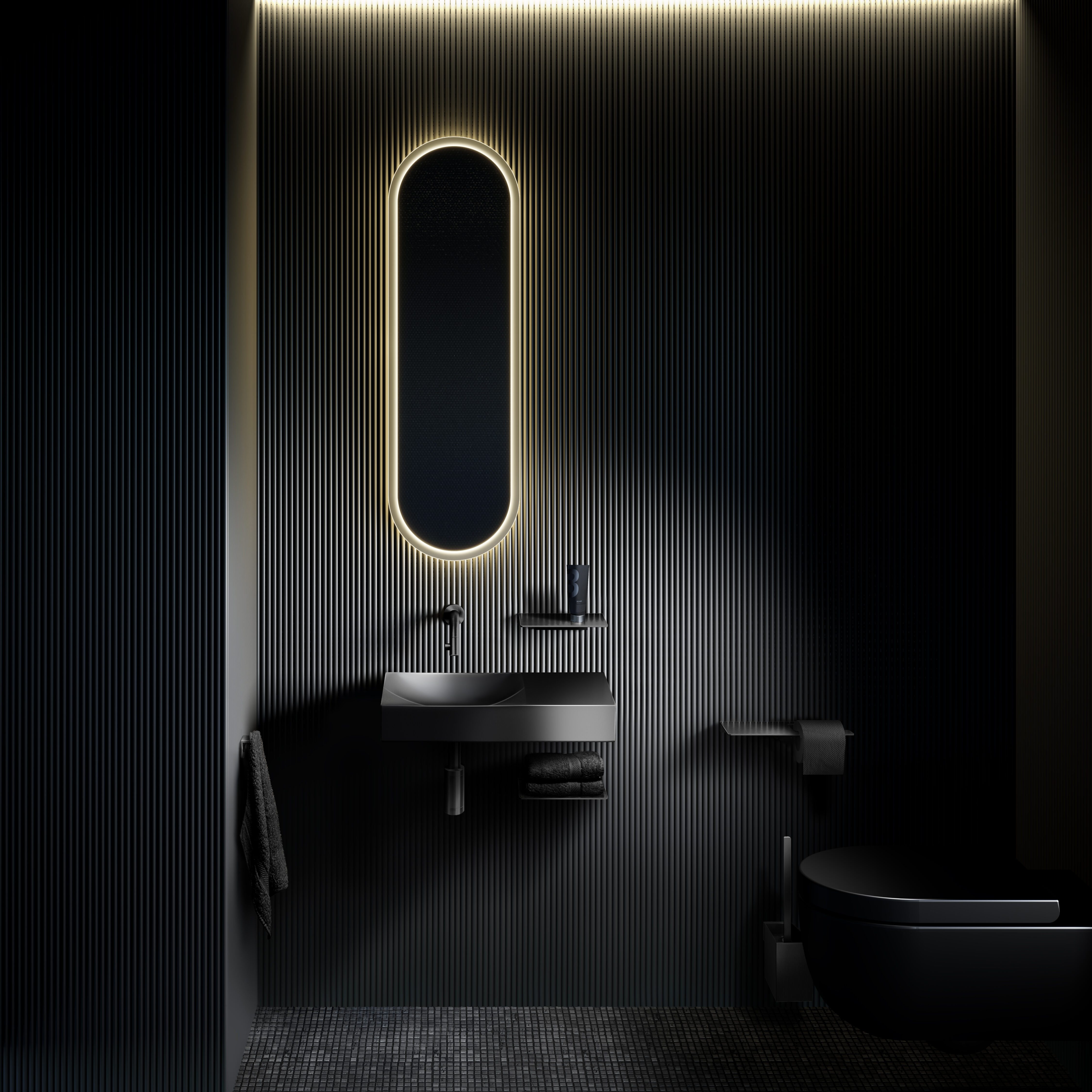 Accessoires Fold en chrome, inox brossé, inox revêtu de poudre blanc mat ou noir mat, ou or, bronze ou canon de fusil brossé PVD.