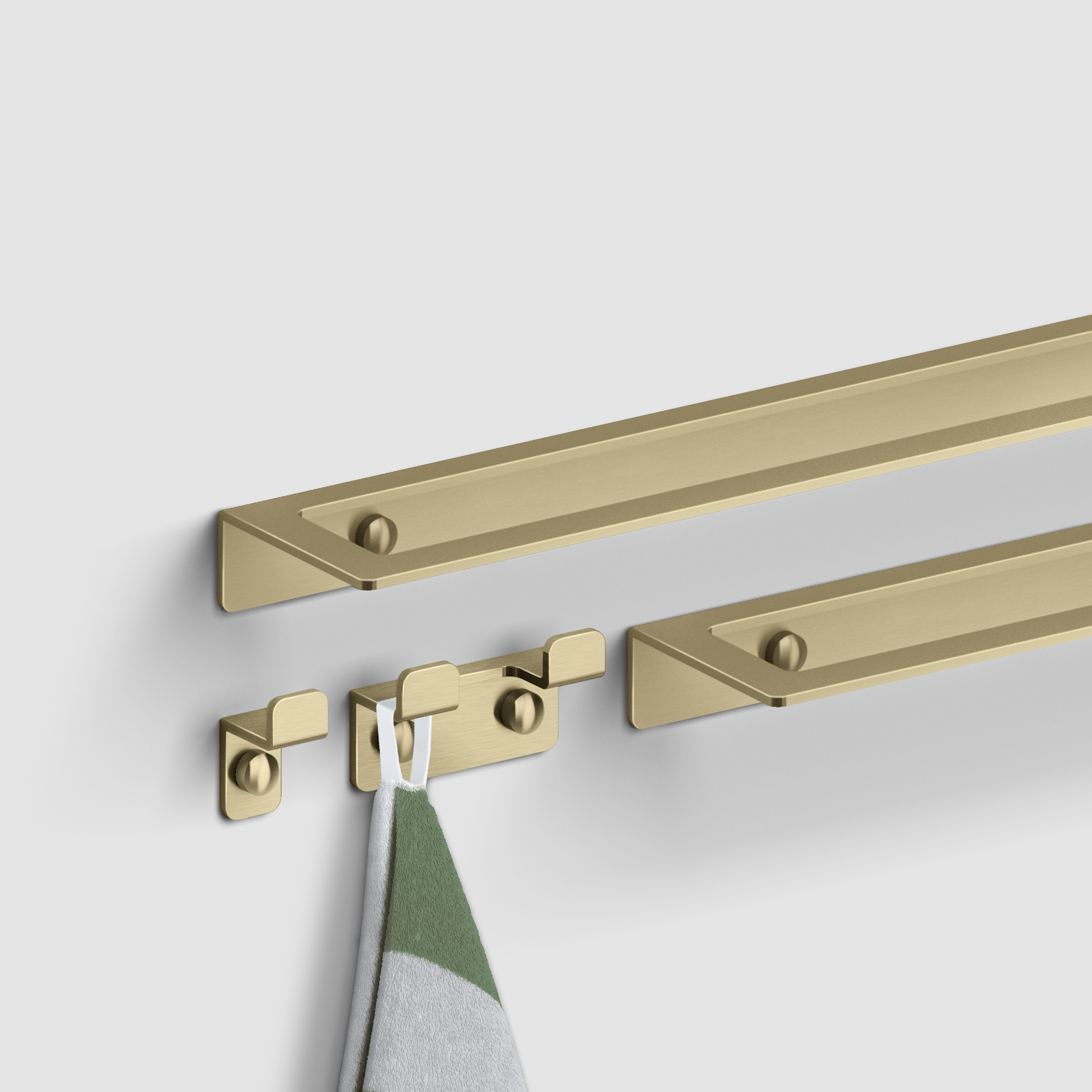Accessoires Fold en chrome, inox brossé, inox revêtu de poudre blanc mat ou noir mat, ou or, bronze ou canon de fusil brossé PVD.