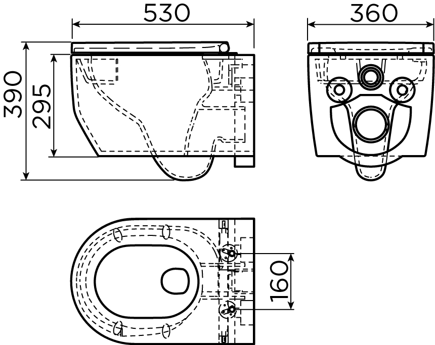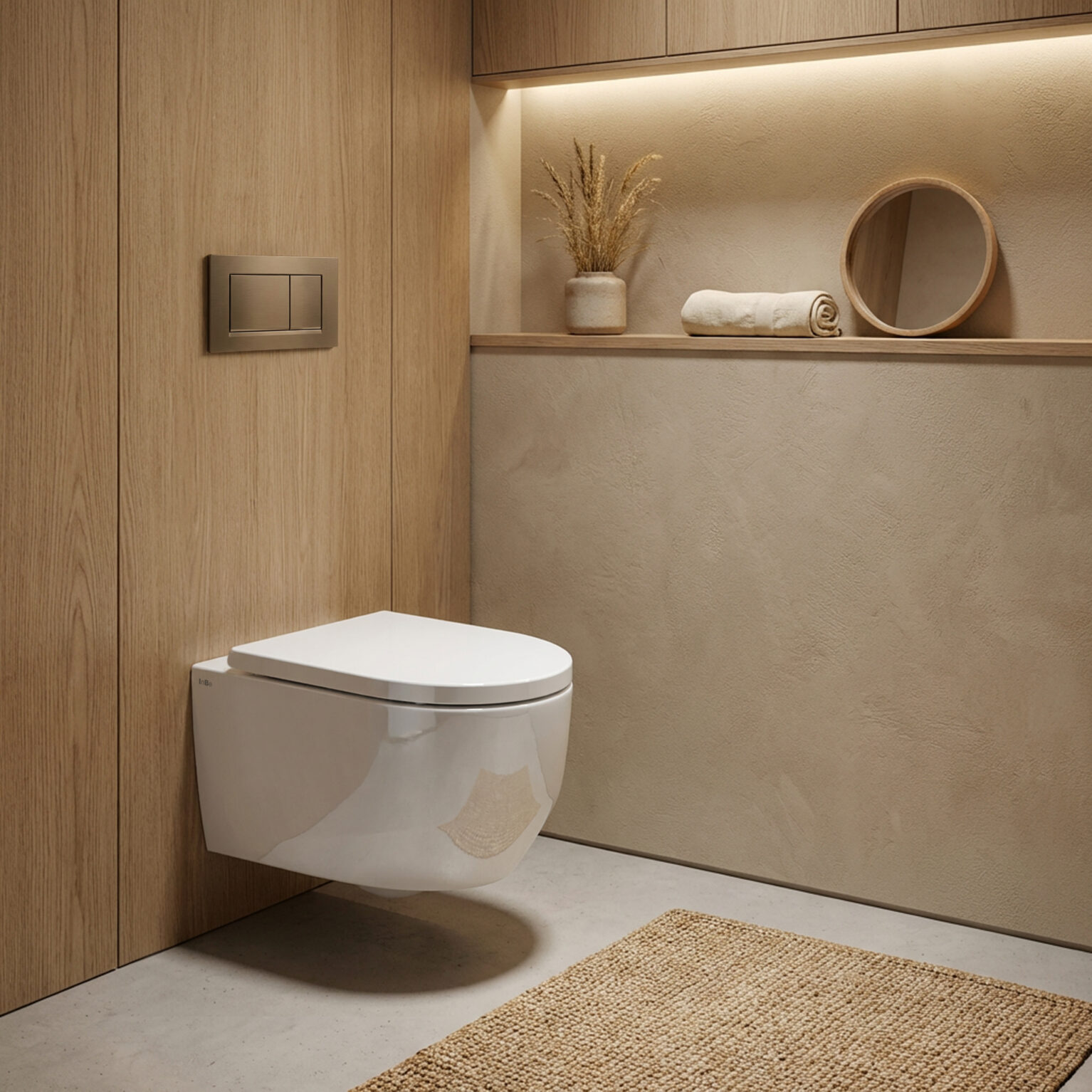 InBe 4 toilette, à suspendre, avec chasse d’eau vortex, avec assise et abattant, système fermeture douceur et montage quick release, 53cm, céramique blanc brillant, set de fixation inclus.