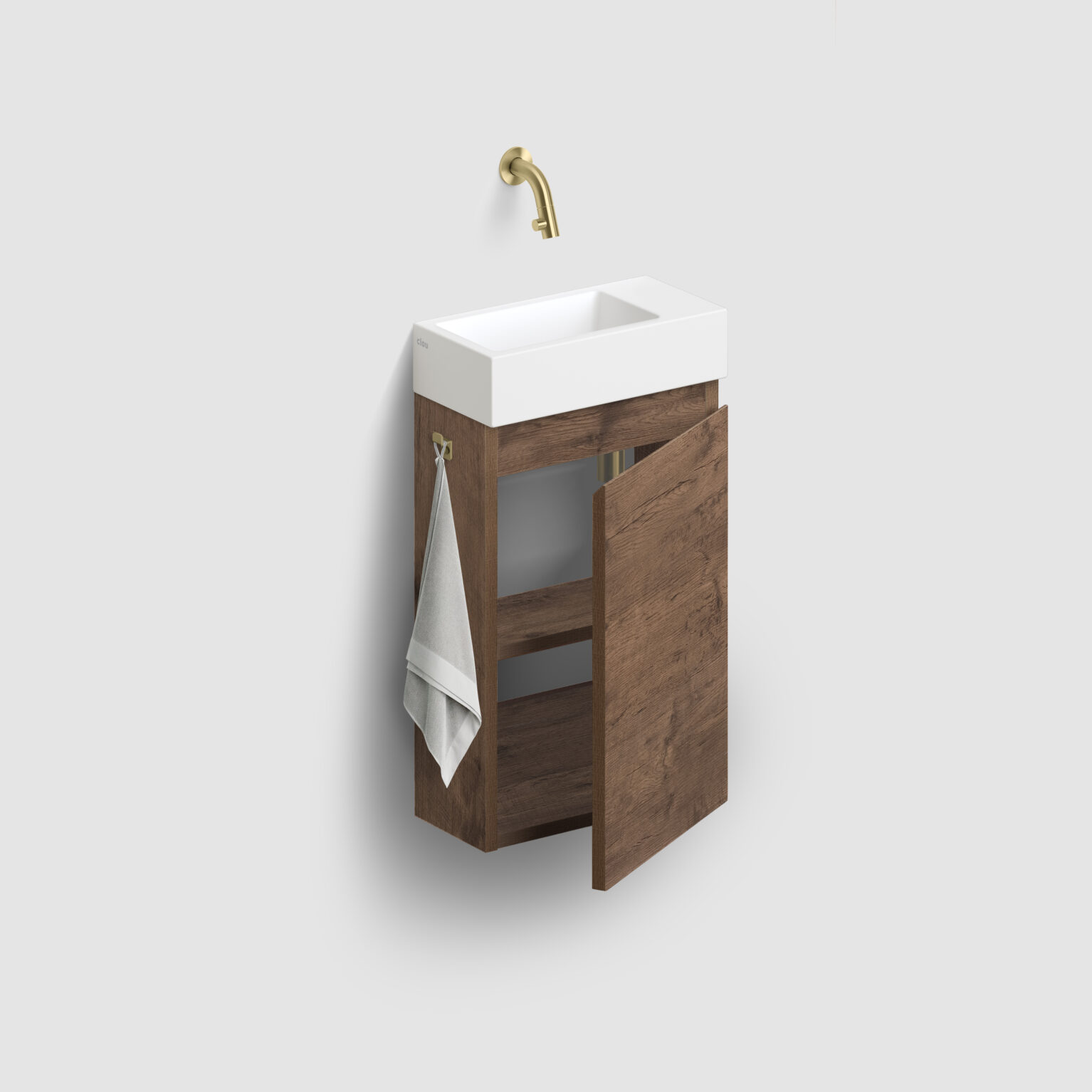 Flush 3 fontein 36cm, zonder kraangat, rechts, met afvoerplug, mat wit keramiek