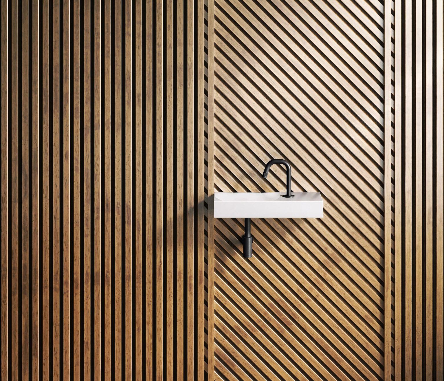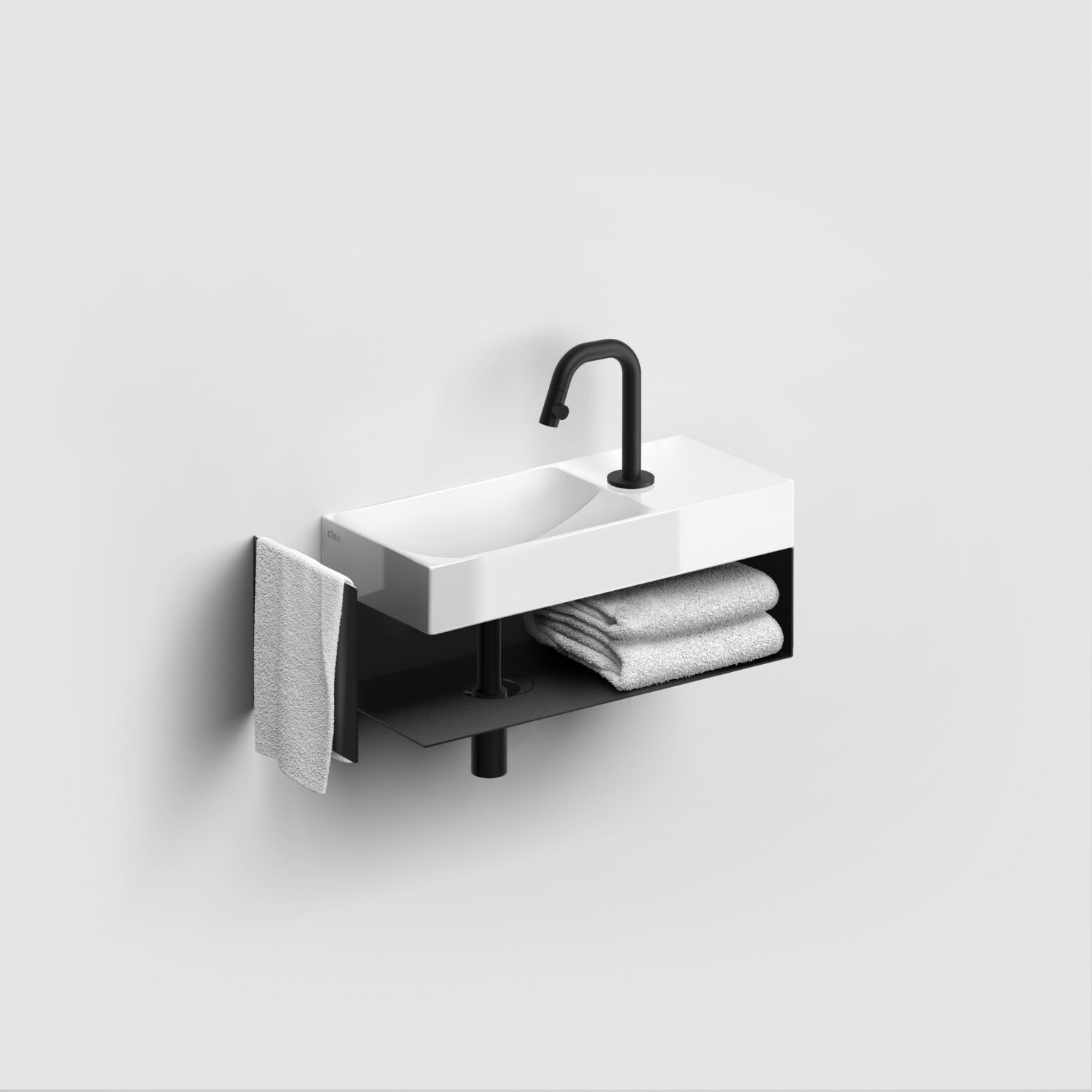 Vale fontein rechts 45cm, met kraangat, glanzend wit keramiek