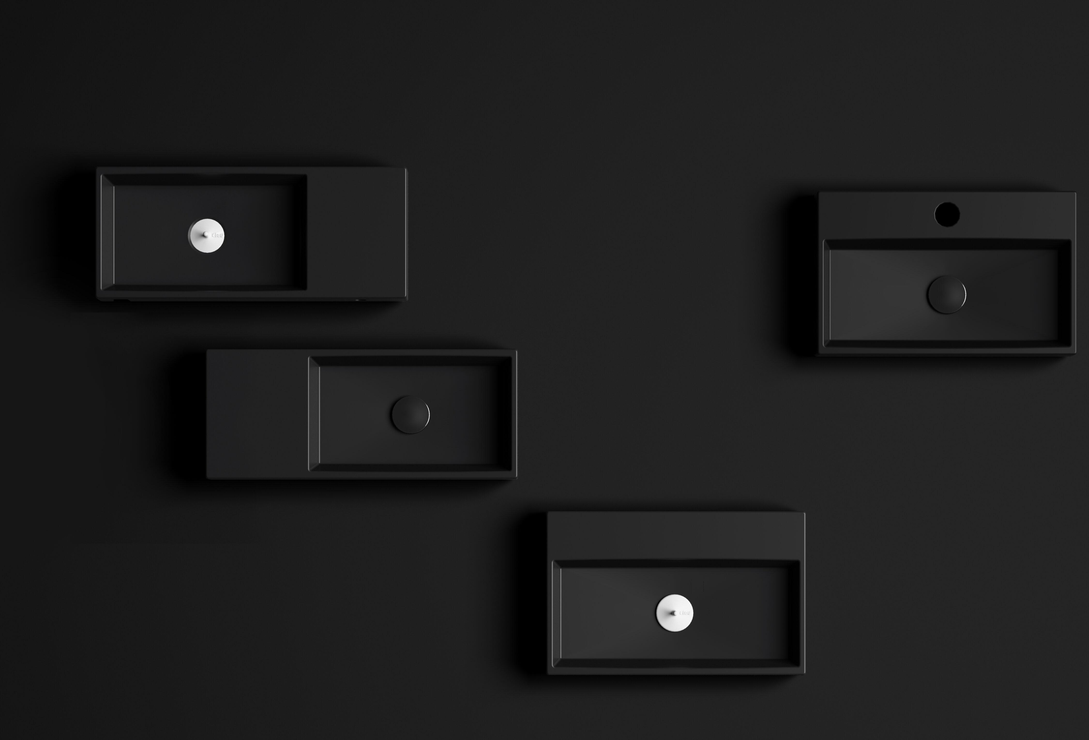 Mini Wash Me fontein 45cm, zonder kraangat links, mat zwart keramiek