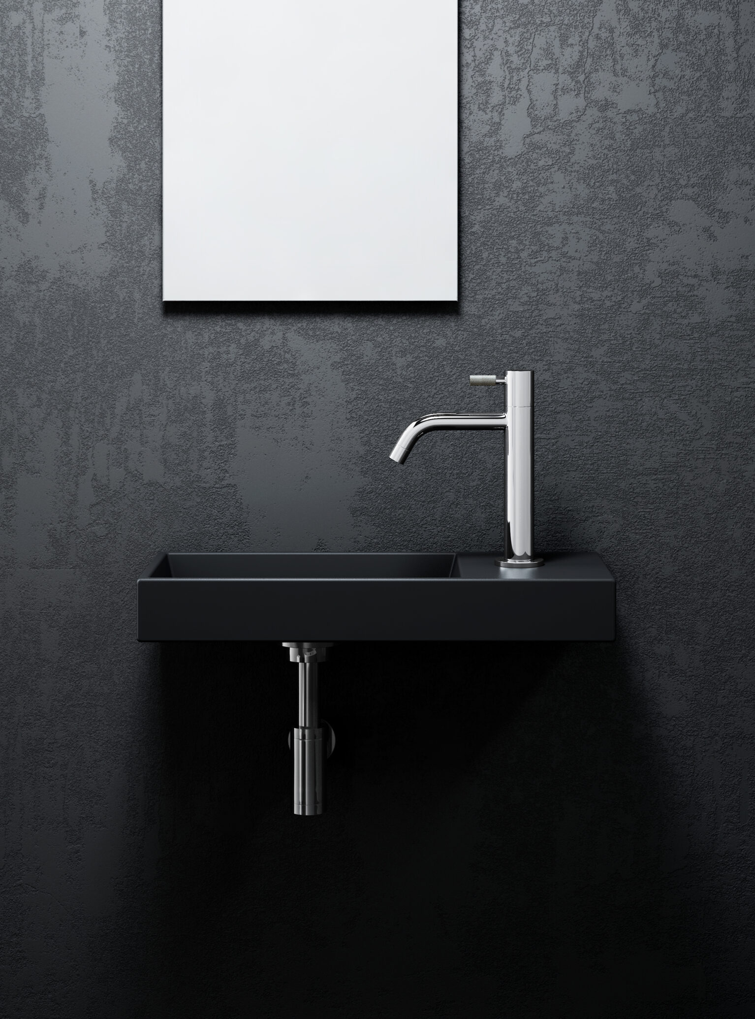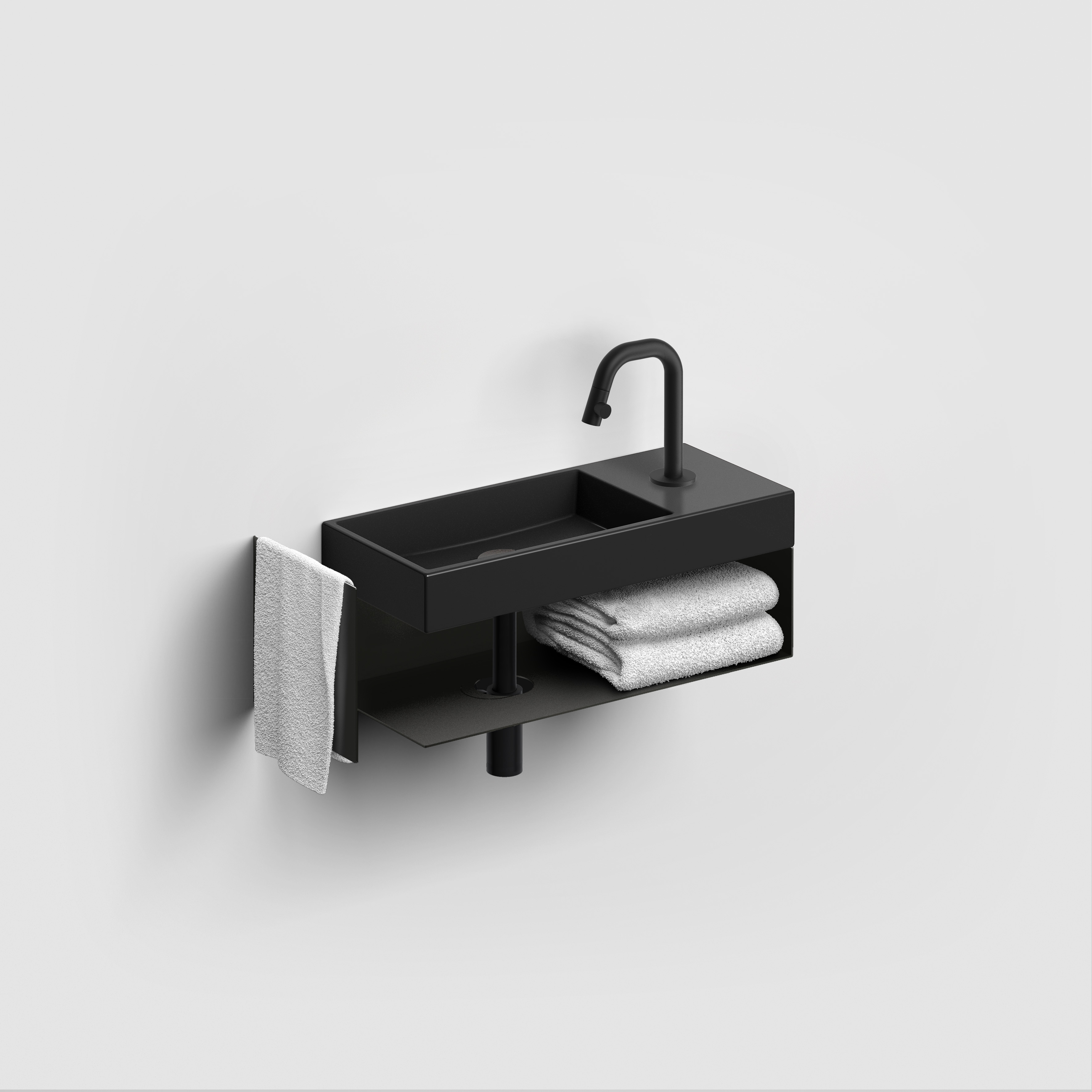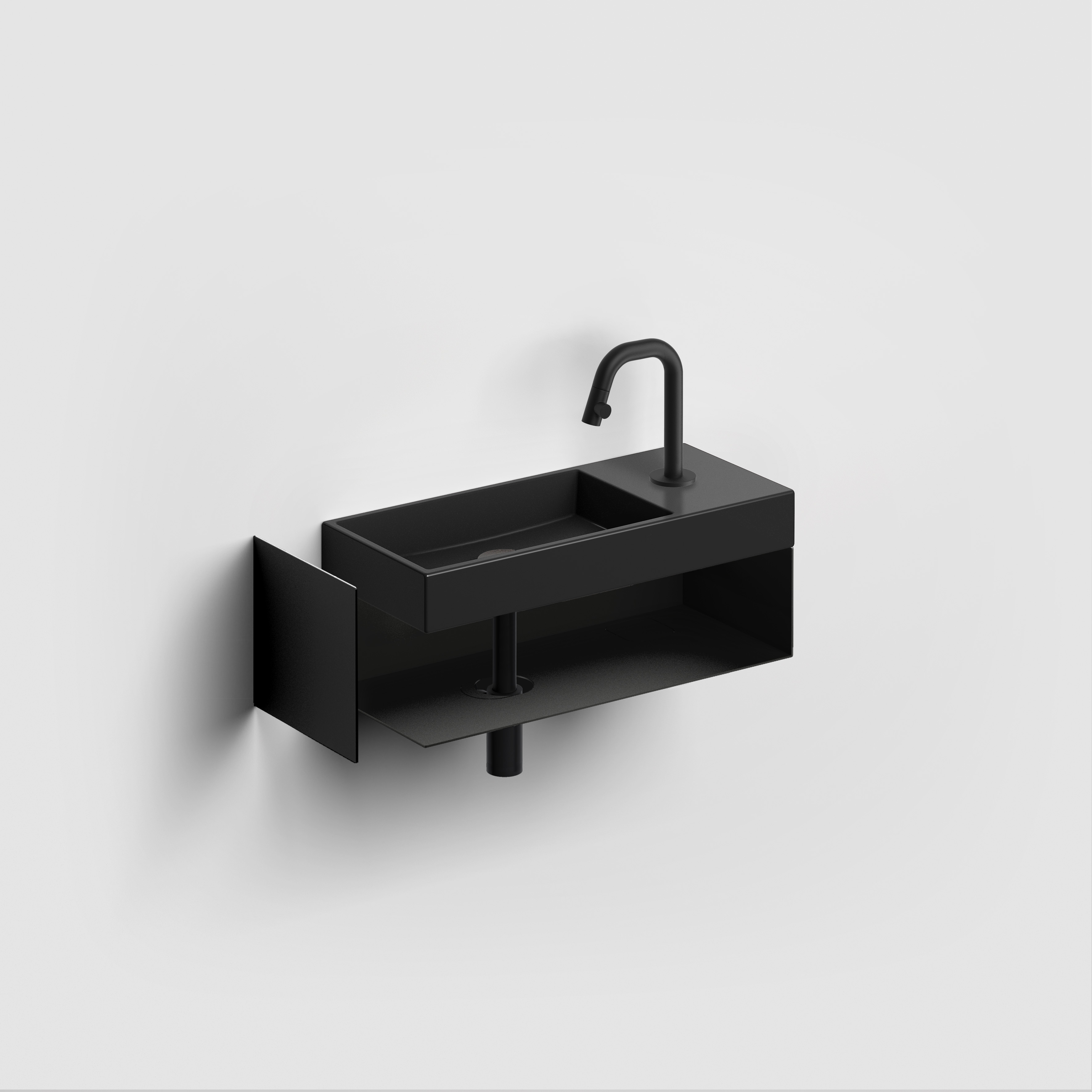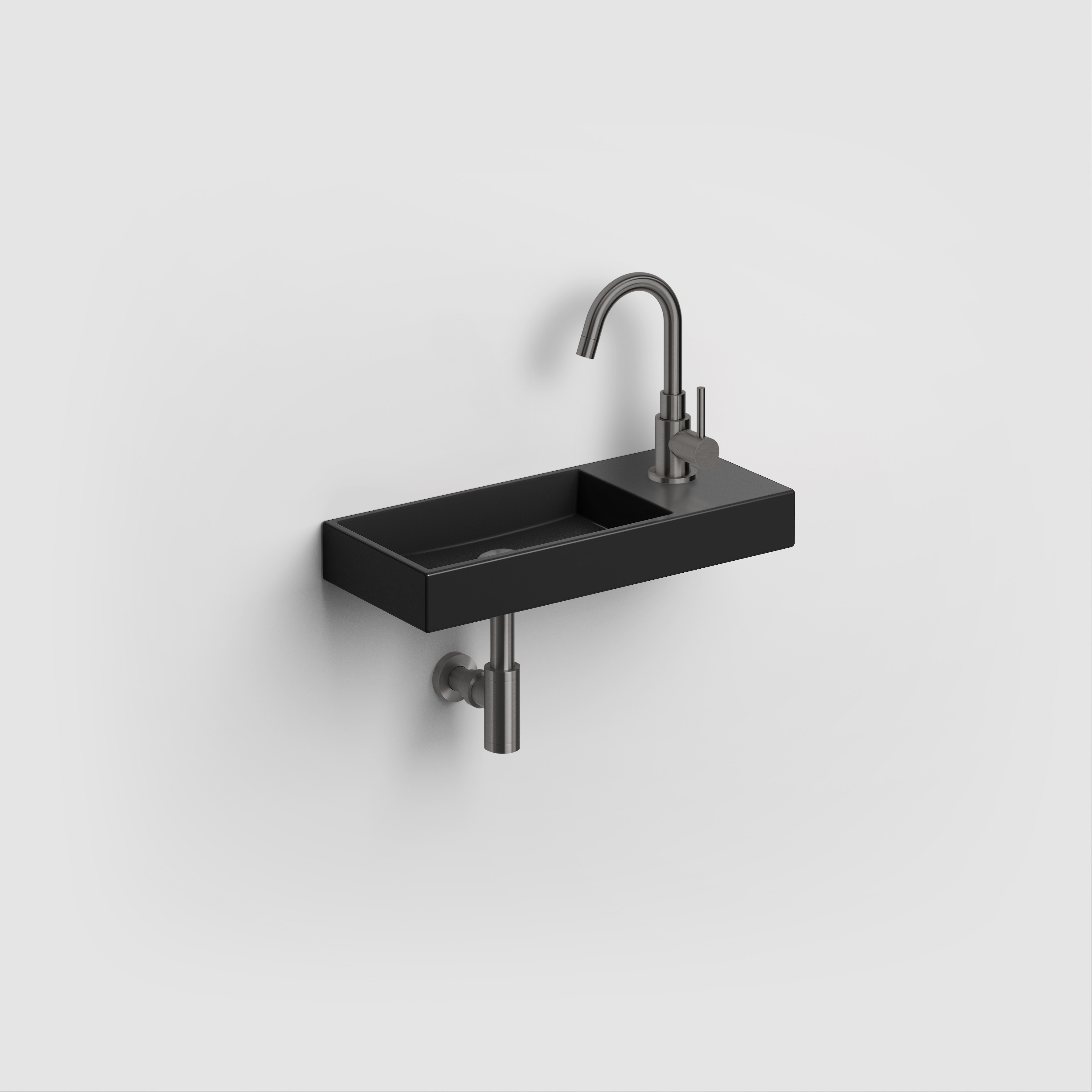 Mini Wash Me fontein 45cm, met kraangat rechts, mat zwart keramiek