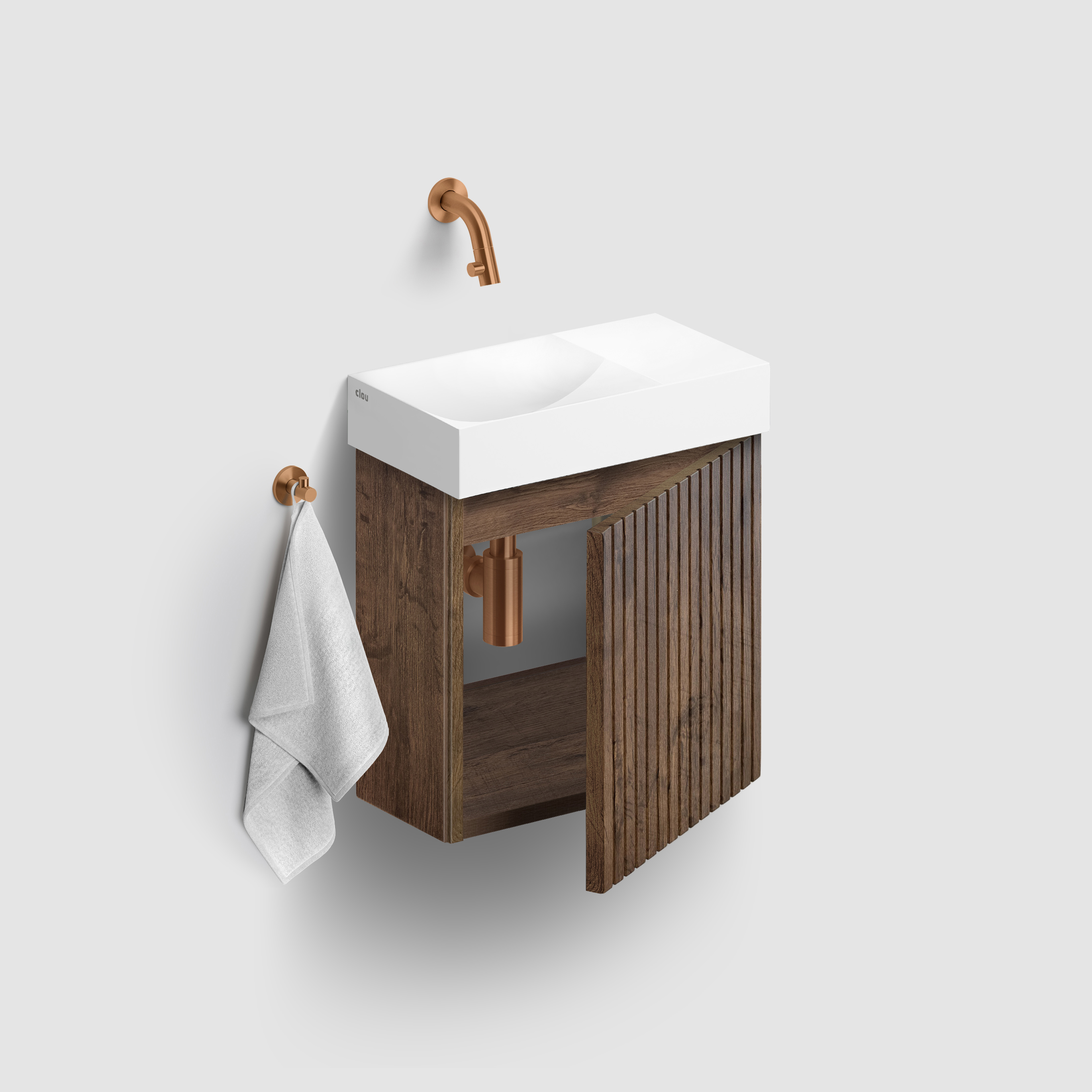 Vale fontein rechts 38cm, met voorbewerkt kraangat, mat wit aluite
