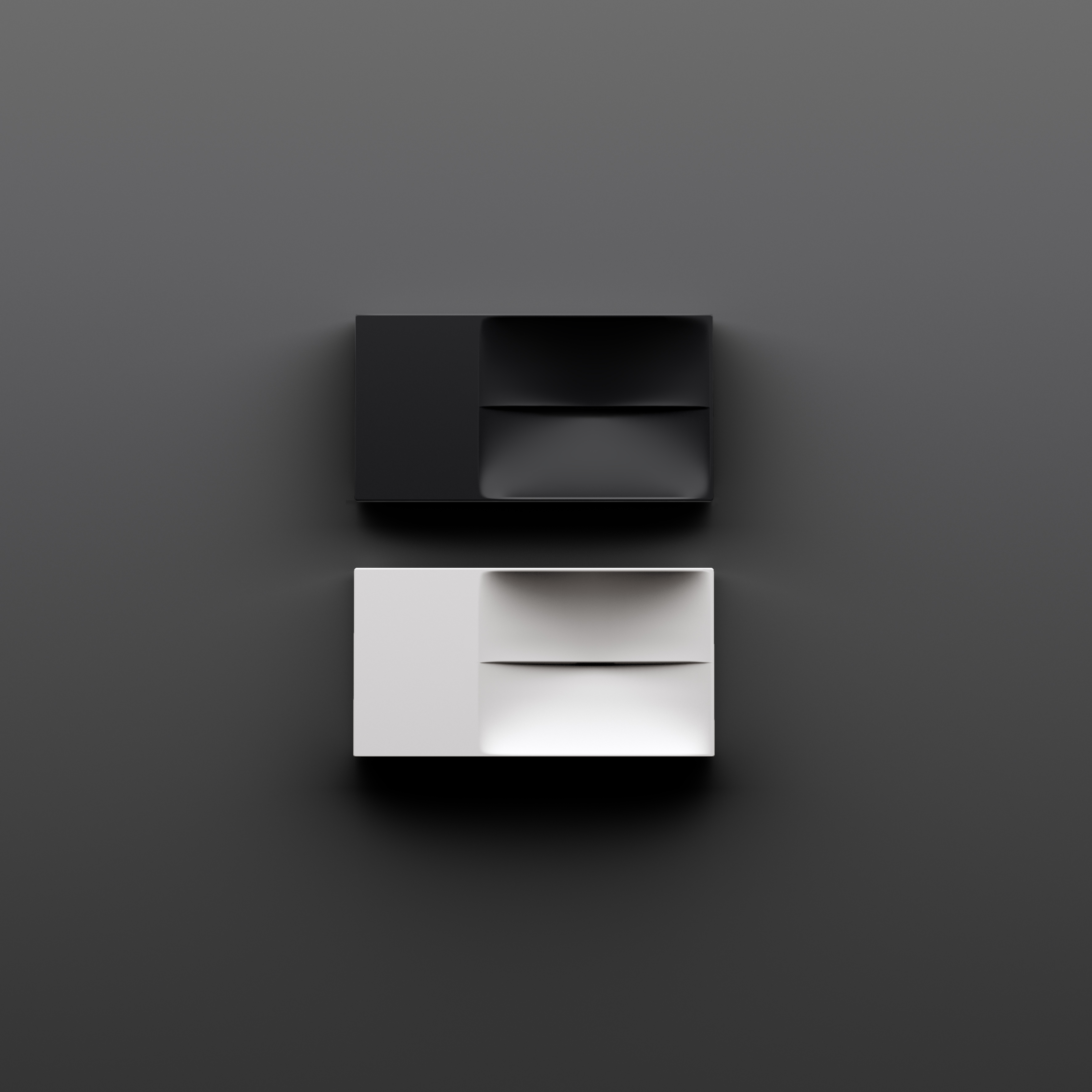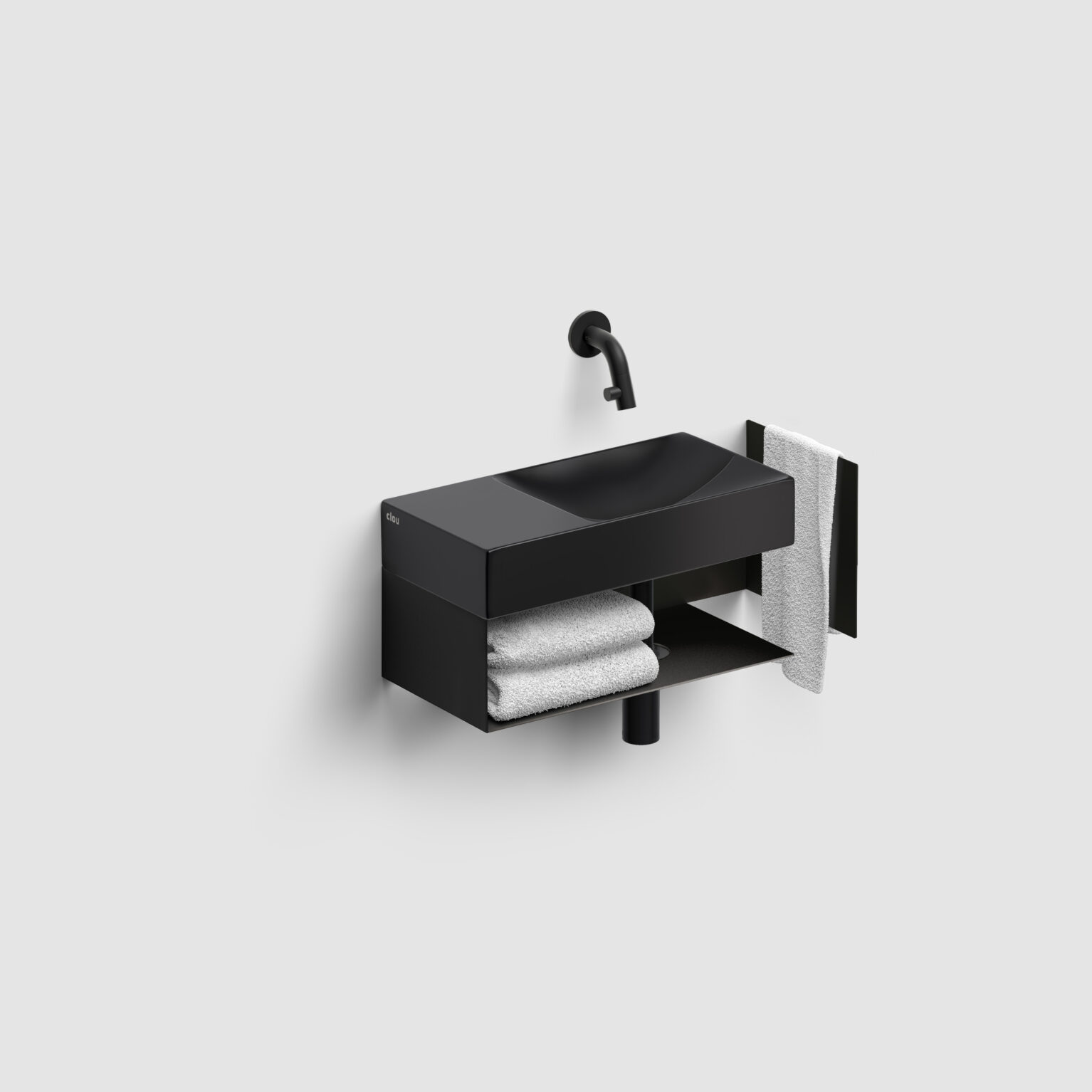 Vale fontein, zonder kraangat links, met geïntegreerde afvoer, mat zwart keramiek. Wandhangend en als opzetfontein te monteren. Niet afsluitbaar.