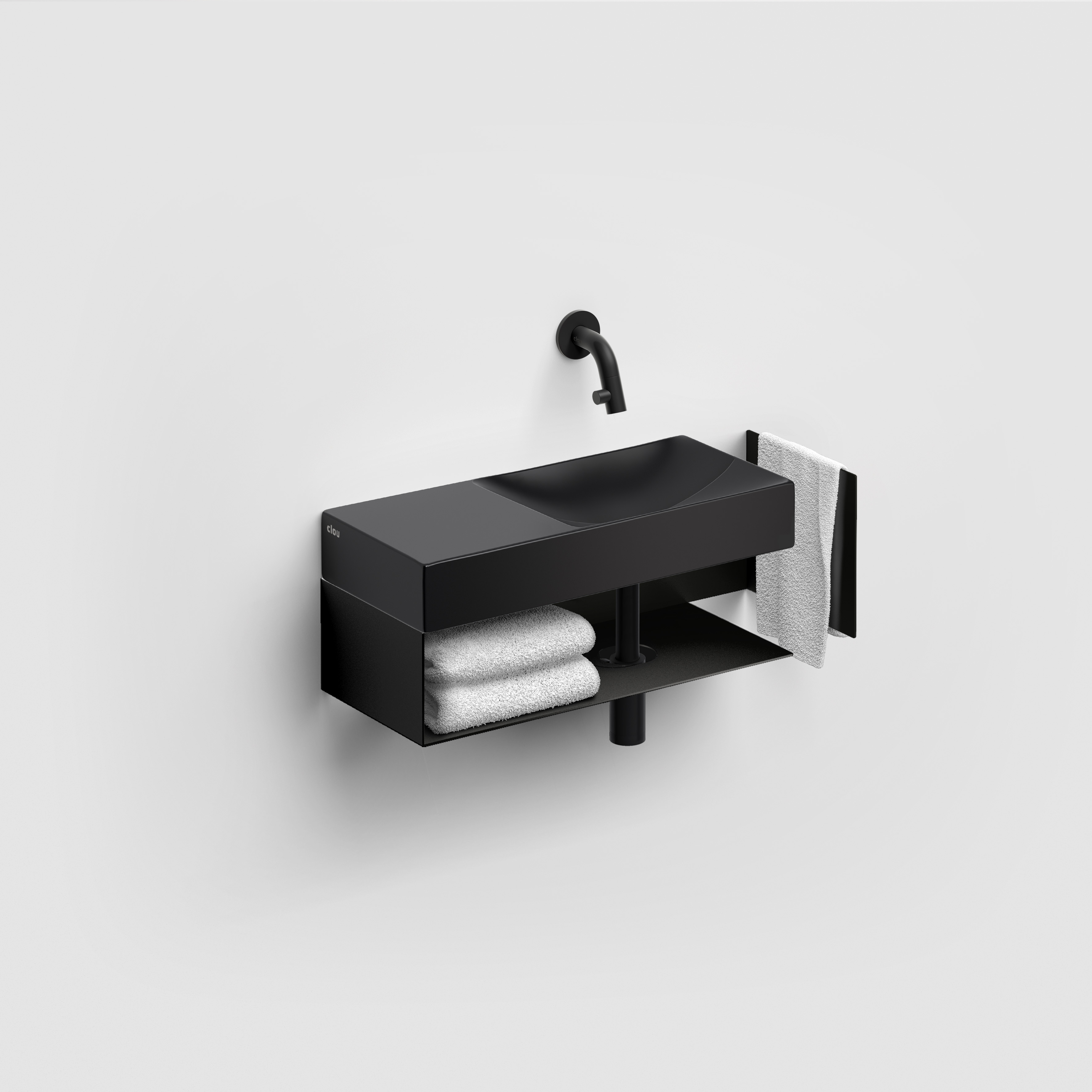 Vale fontein links 45cm, zonder kraangat, mat zwart keramiek