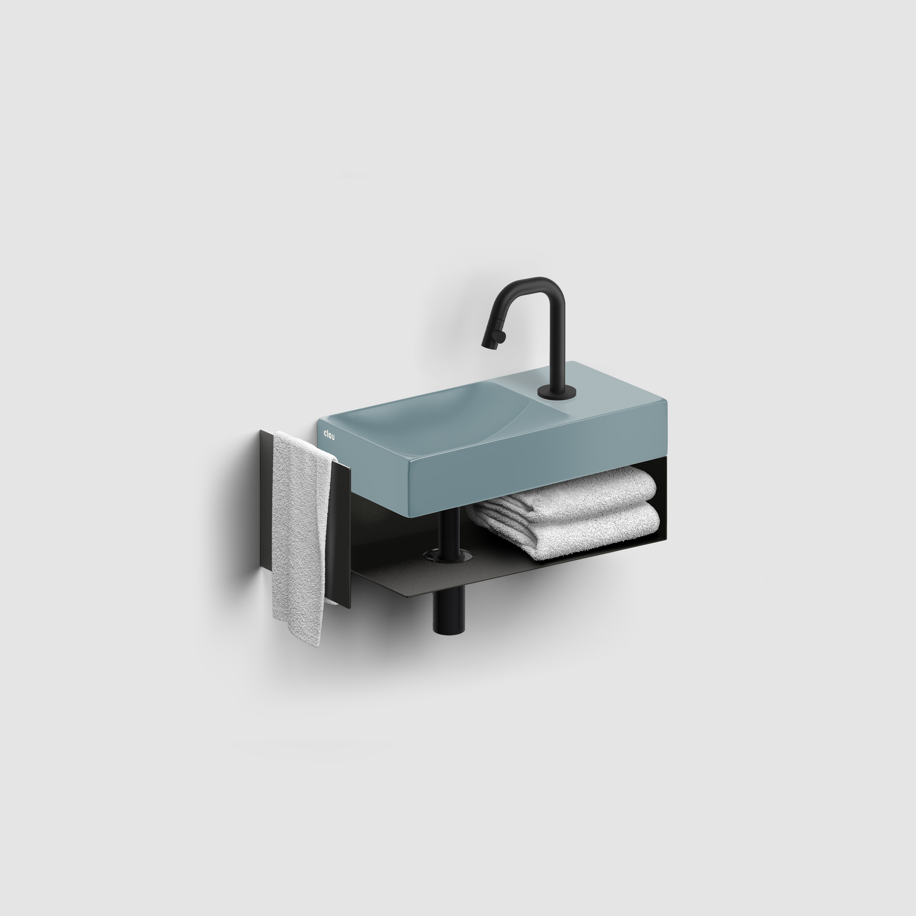 Vale fontein, met kranenbank rechts, met geïntegreerde afvoer. Wandhangend en als opzetfontein te monteren. Niet afsluitbaar.