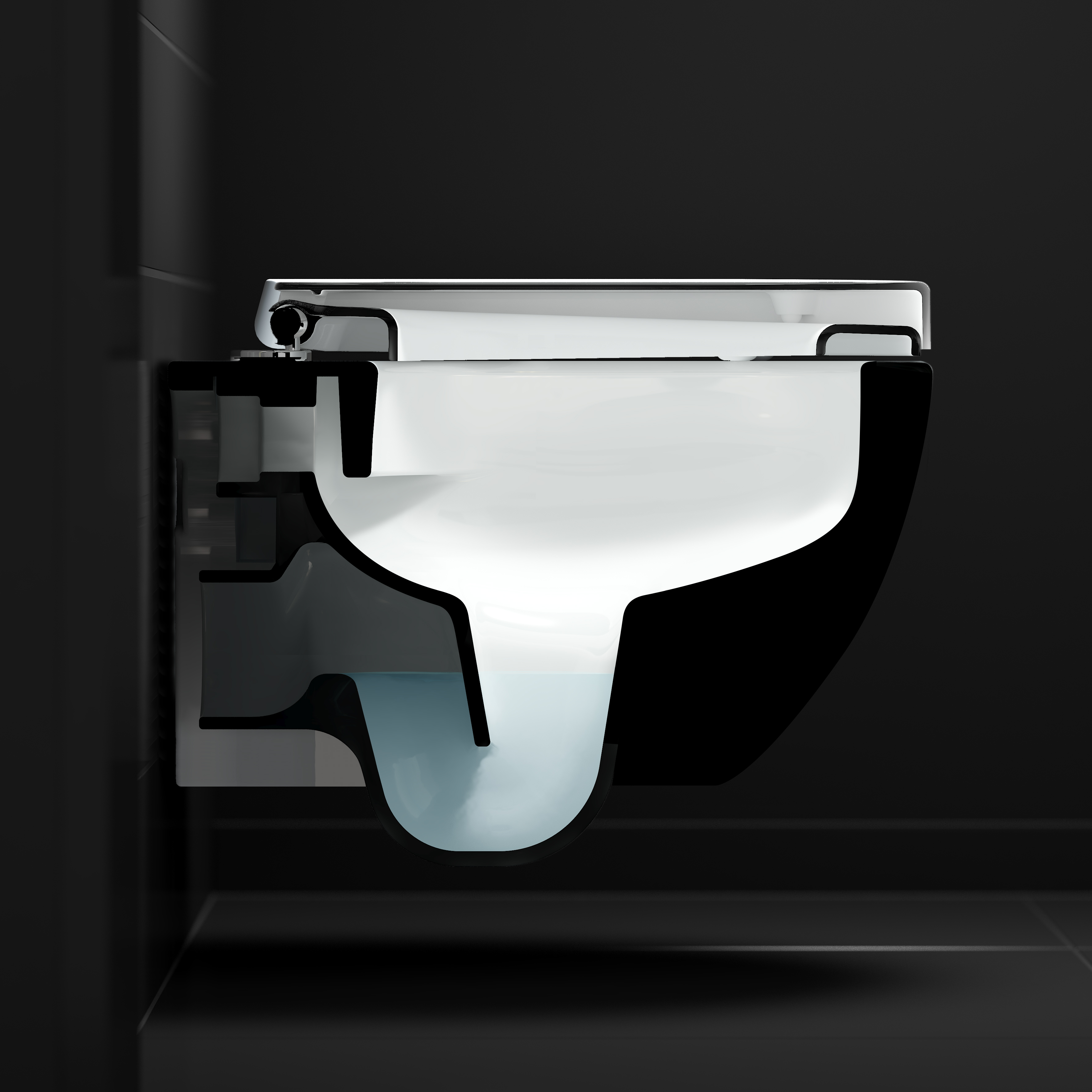 New Hammock randloos wandtoilet, keramiek, met toiletzitting met deksel, soft-closing en quick release systeem, kunststof. Bevestiging inbegrepen.