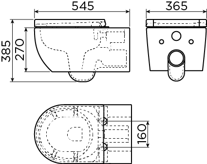 randloos wandtoilet, 54 cm, mat wit, incl. dikke zitting & deksel