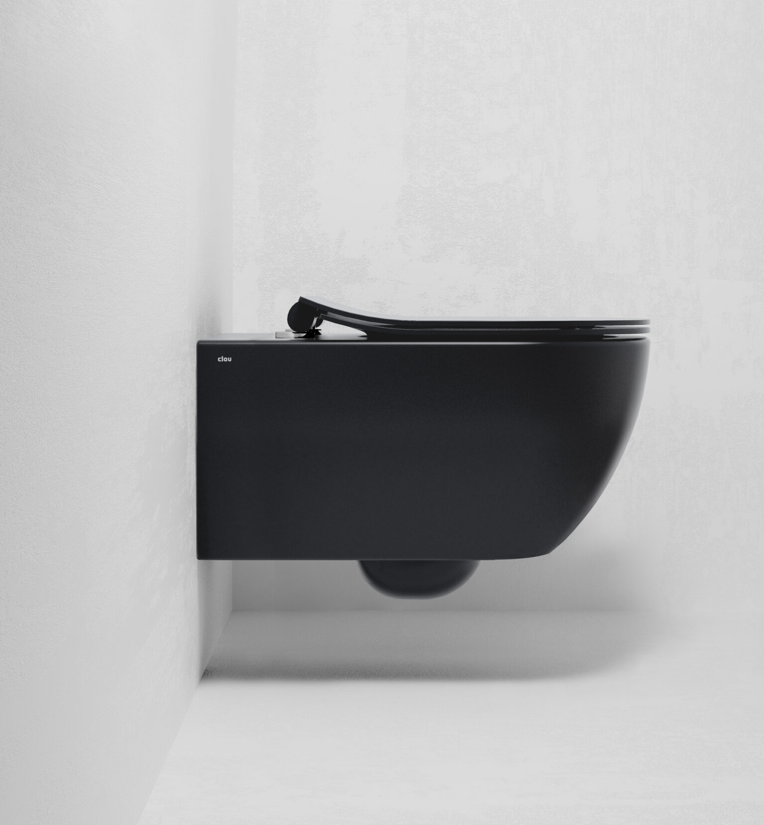 randloos wandtoilet, 54 cm, mat zwart, incl. dunne zitting & deksel