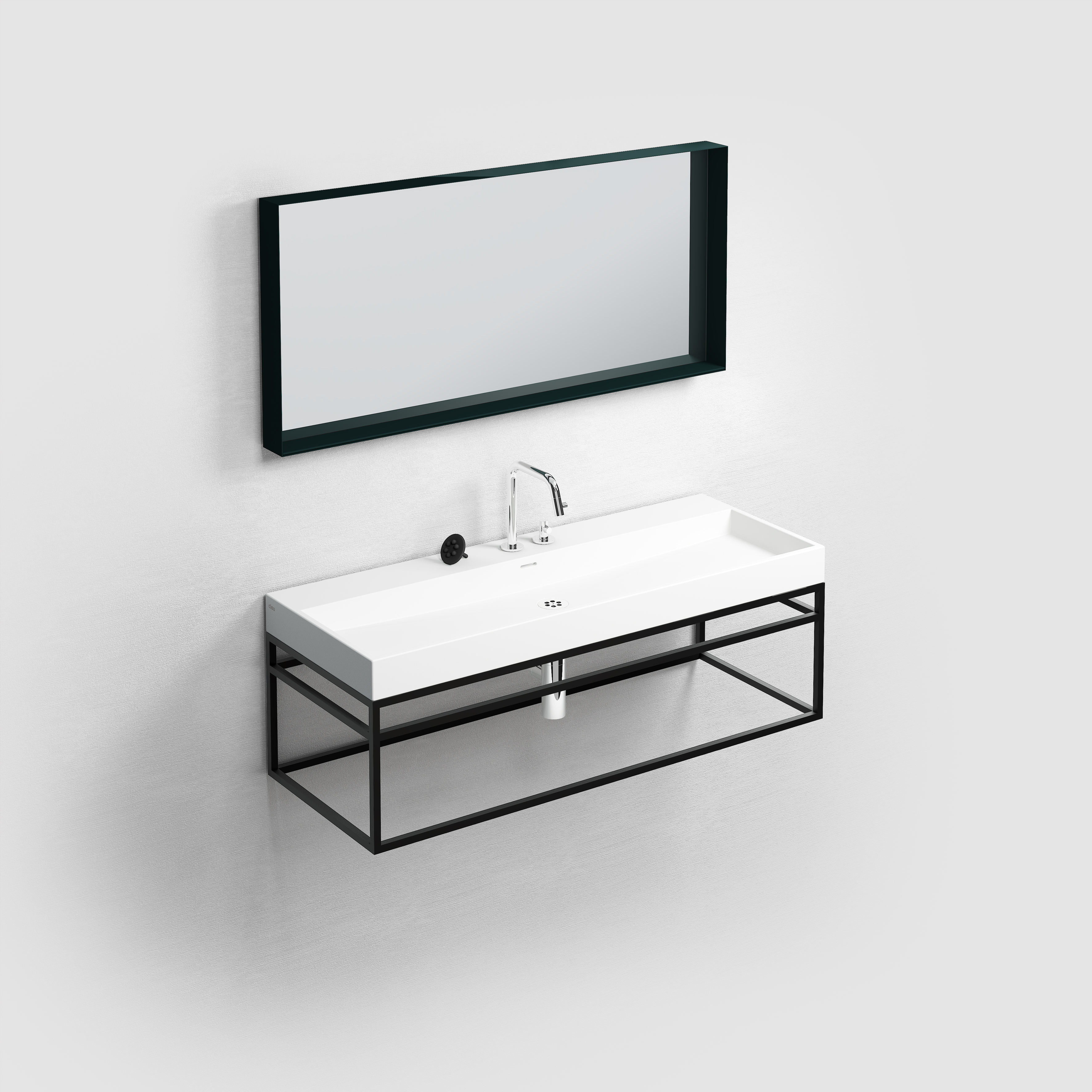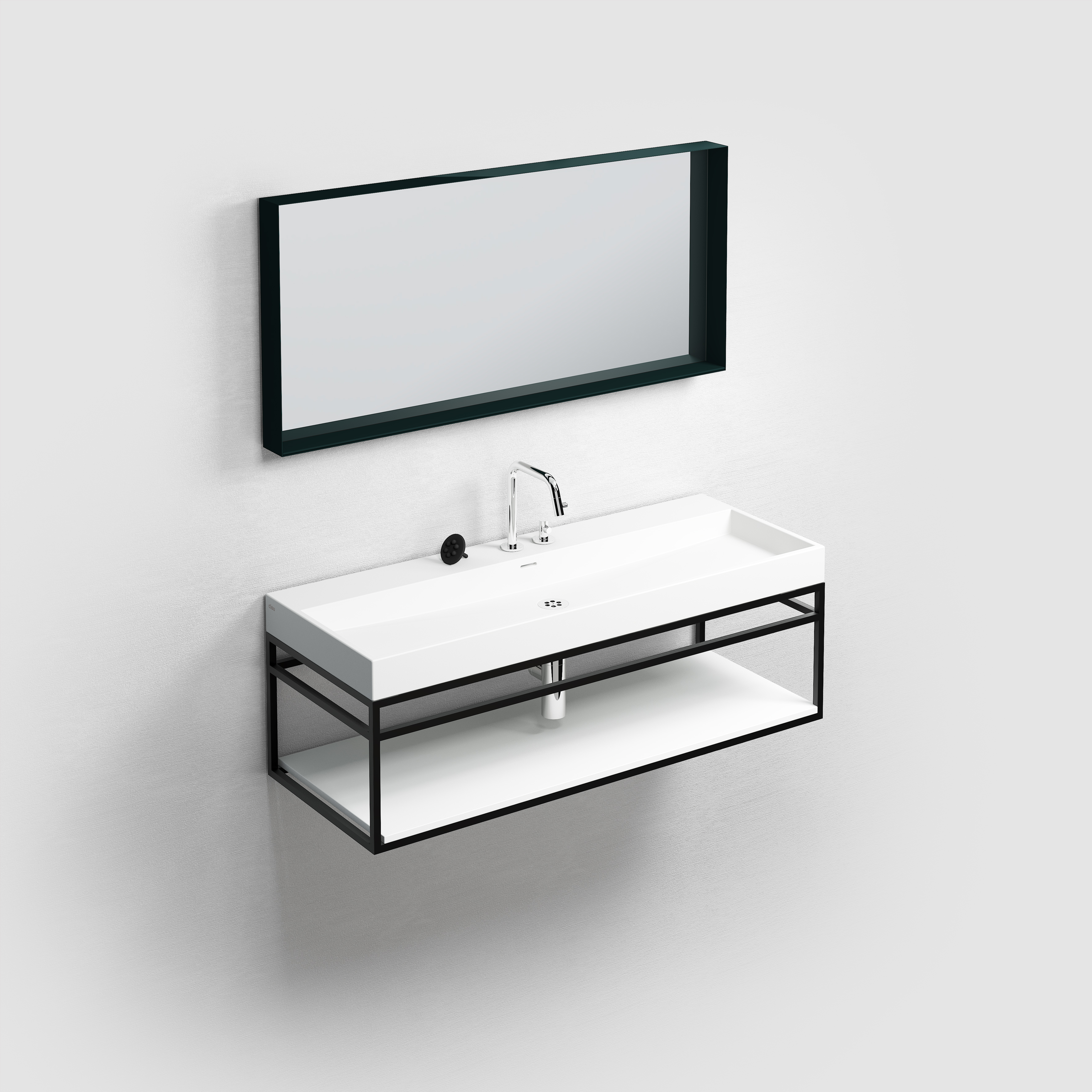 mat zwart, met ophangsysteem, met glazen planchet