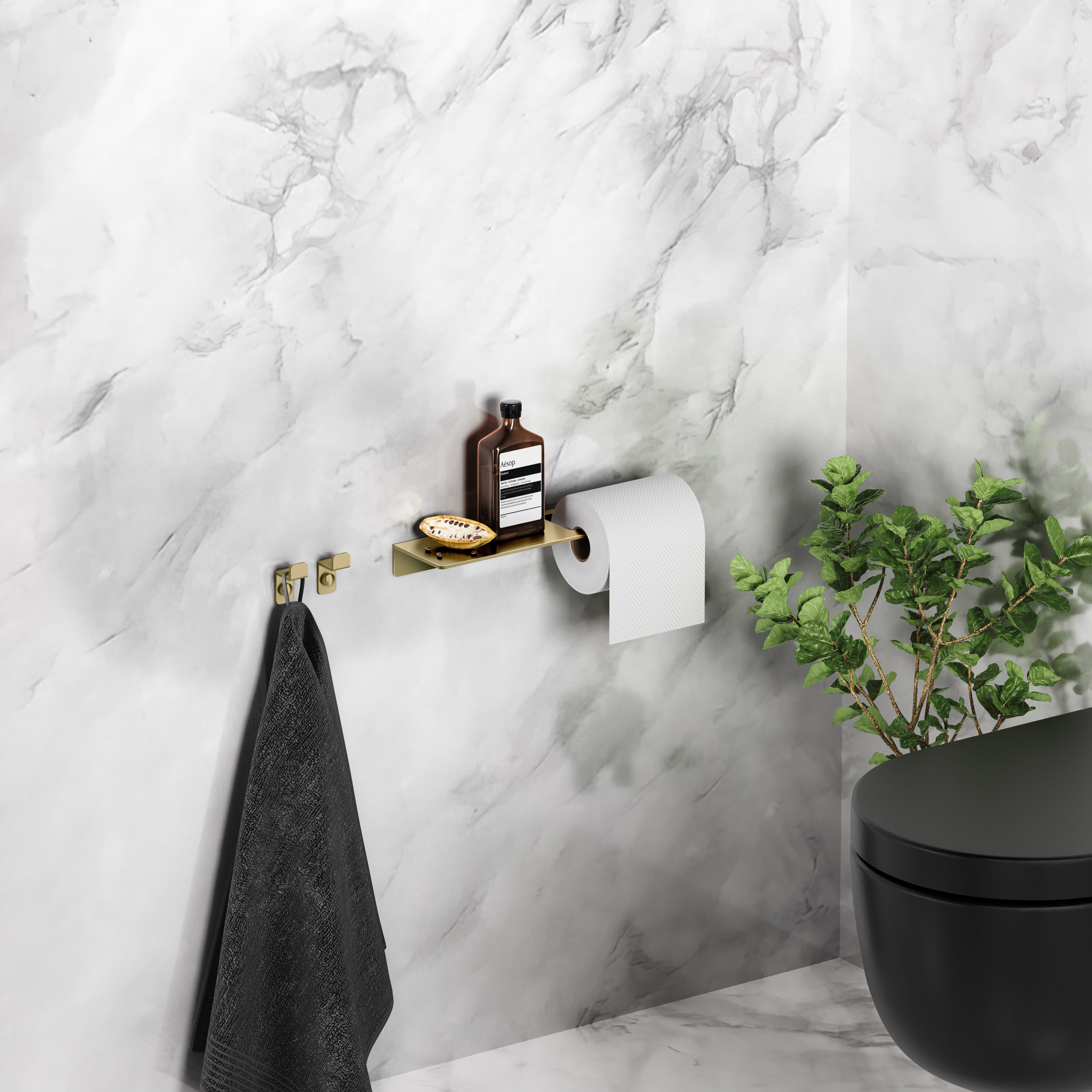 toiletrolhouder met planchet, goud geborsteld PVD