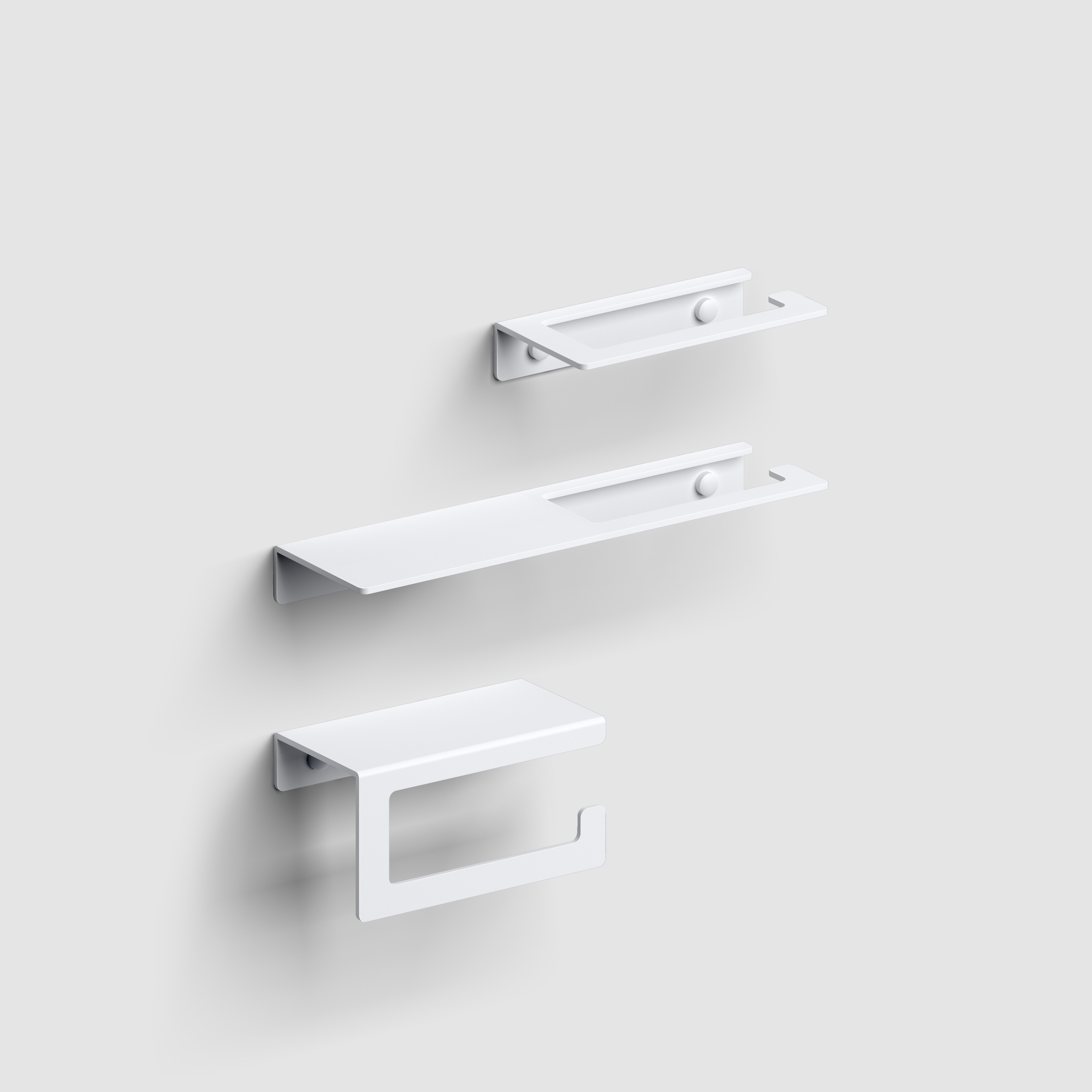 Fold accessoires in chroom, RVS, mat witte of mat zwarte poedercoating, of goud, brons of gunmetal geborsteld PVD.