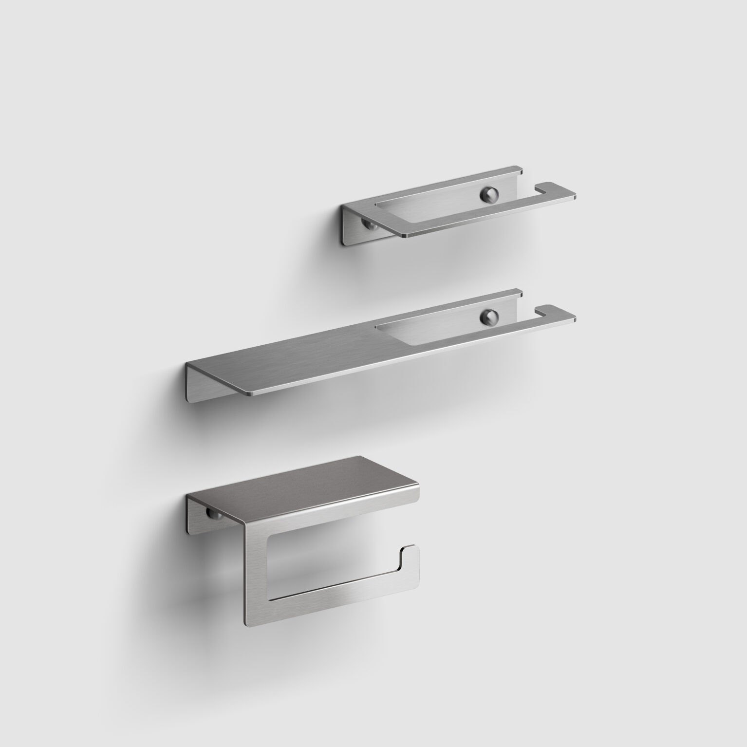Fold accessoires in chroom, RVS, mat witte of mat zwarte poedercoating, of goud, brons of gunmetal geborsteld PVD.