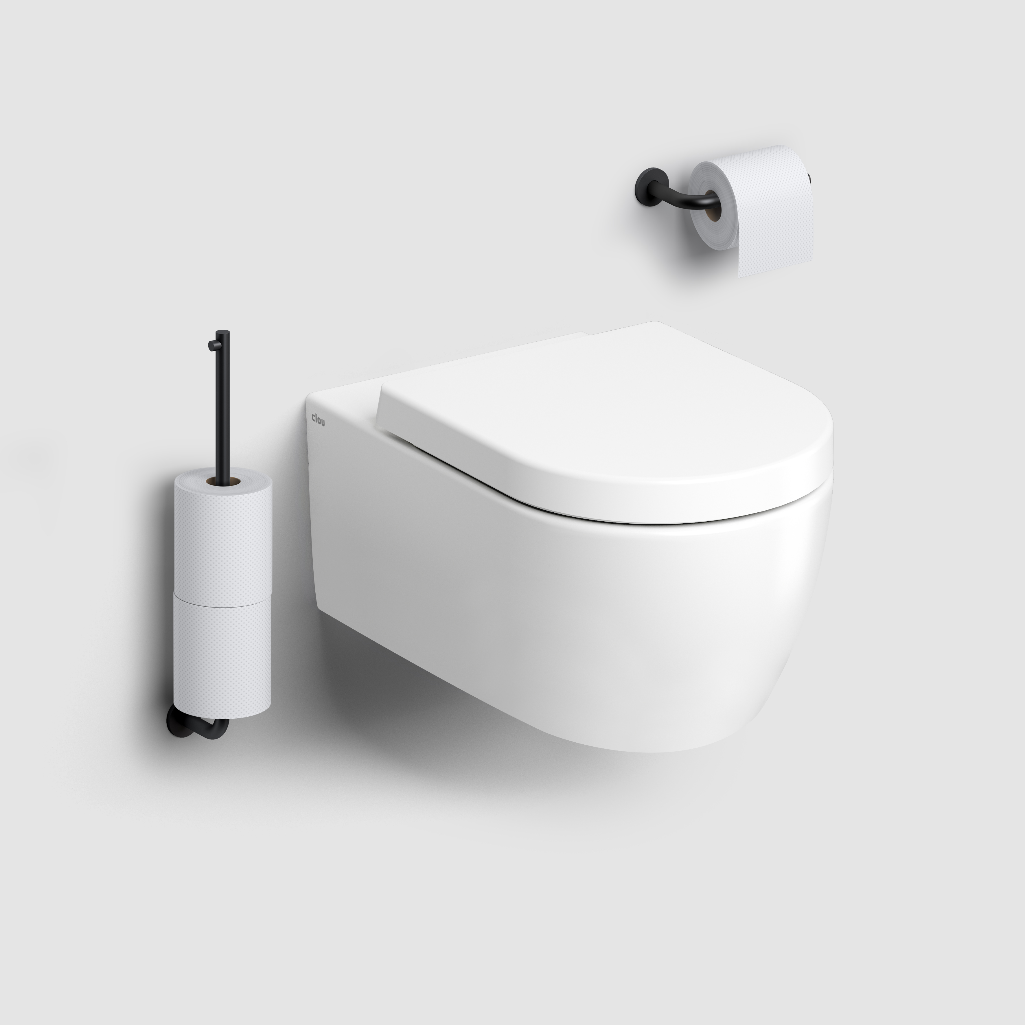 Kaldur toiletrolhouder, L-vorm, zonder klep, mat zwart