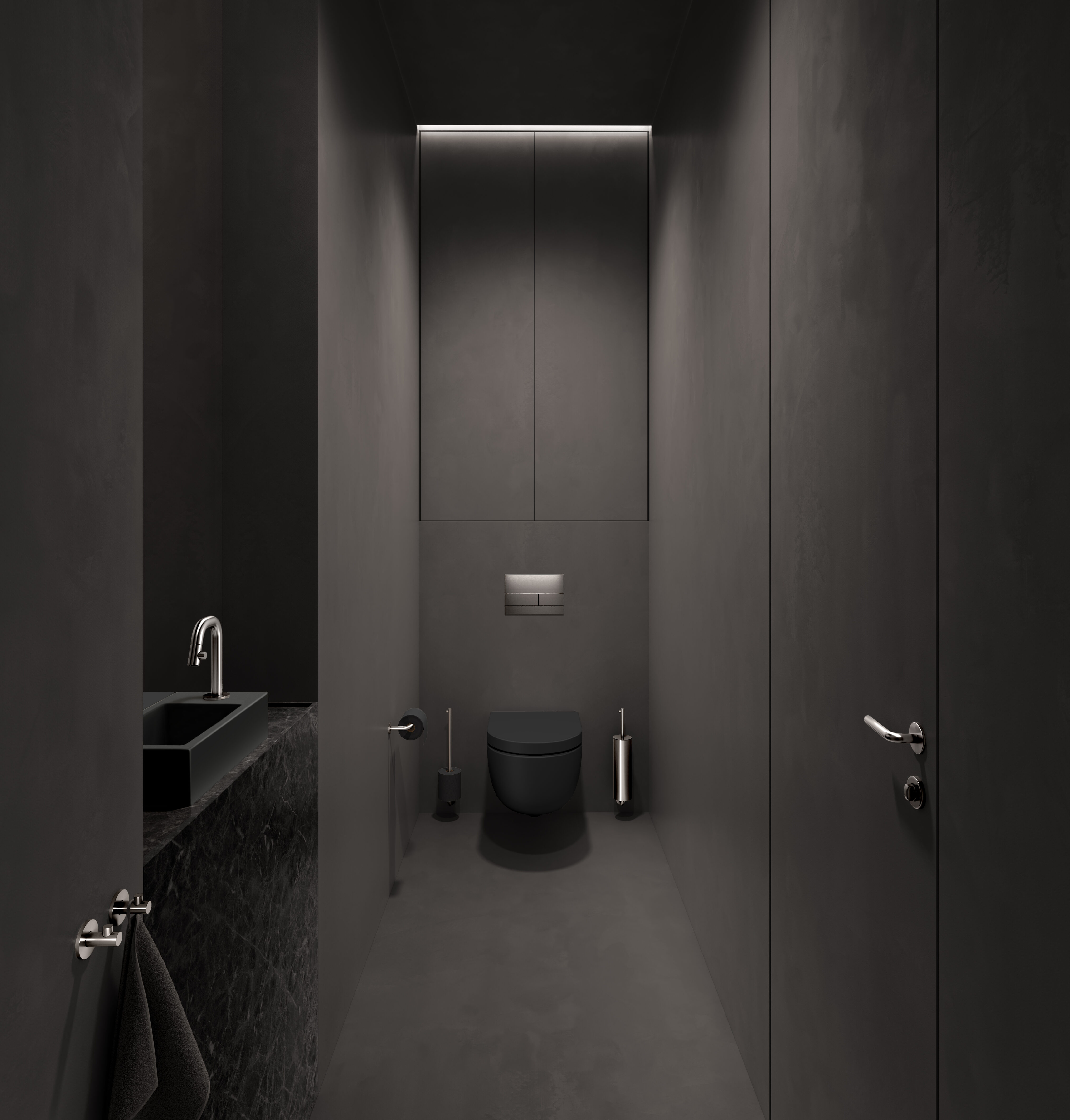 Kaldur accessoires in de kleuren: mat wit, mat zwart, chroom, geborsteld rvs, goud geborsteld PVD, brons geborsteld PVD, gunmetal geborsteld PVD. De serie is perfect te combineren met de Kaldur fontein- en wastafelkranen.