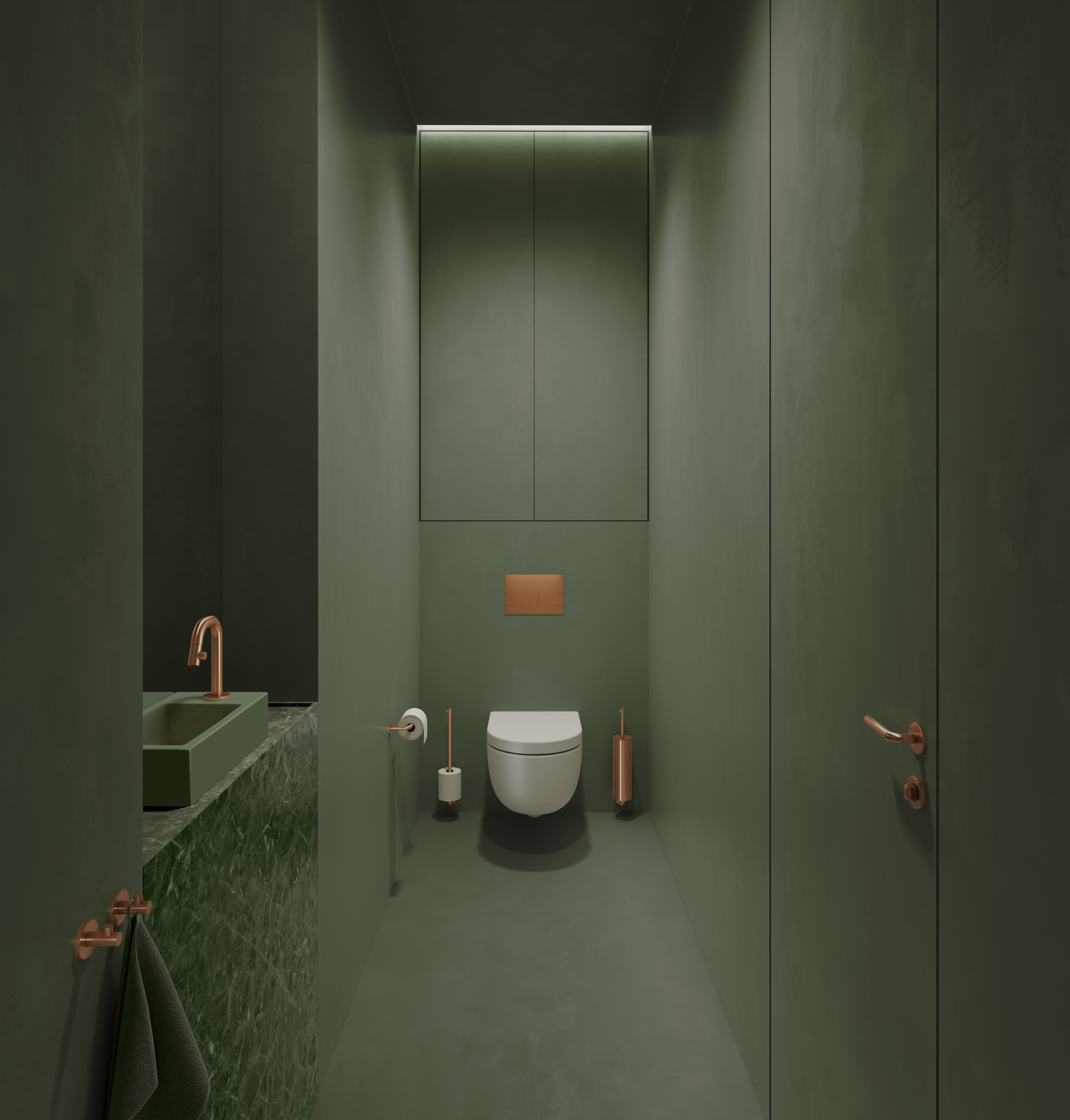 Kaldur accessoires in de kleuren: mat wit, mat zwart, chroom, geborsteld rvs, goud geborsteld PVD, brons geborsteld PVD, gunmetal geborsteld PVD. De serie is perfect te combineren met de Kaldur fontein- en wastafelkranen.