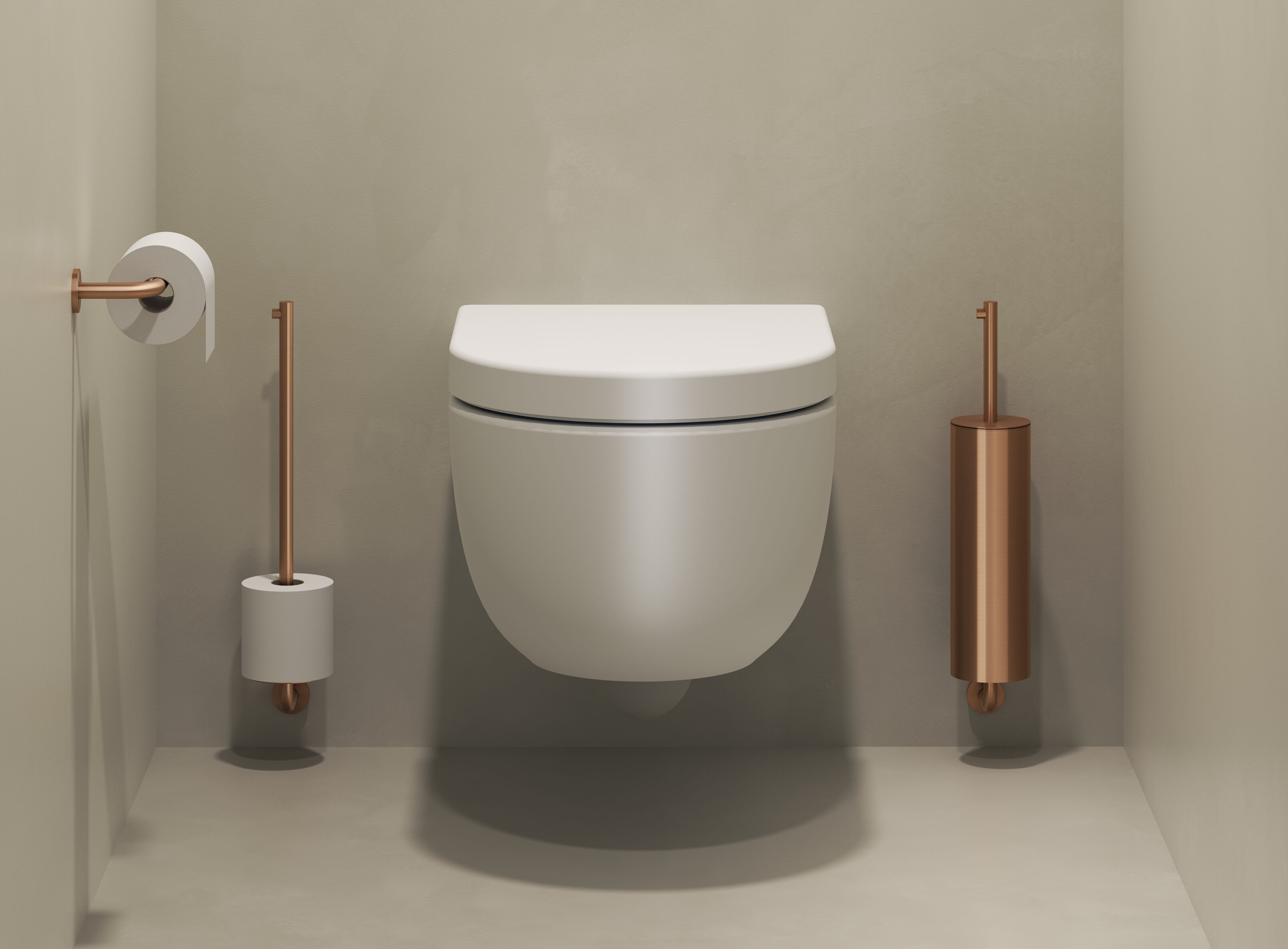Kaldur toilet accessoireset bestaande uit toiletborstel, toiletrolhouder, reserverolhouder en kledinghaak, brons PVD geborsteld