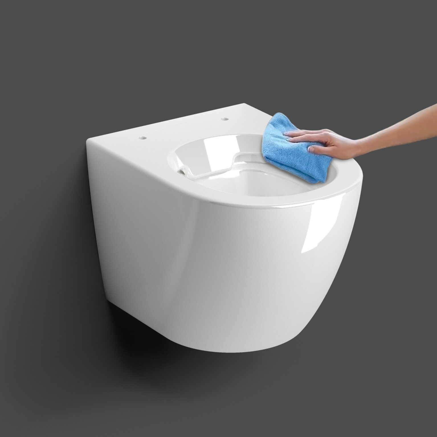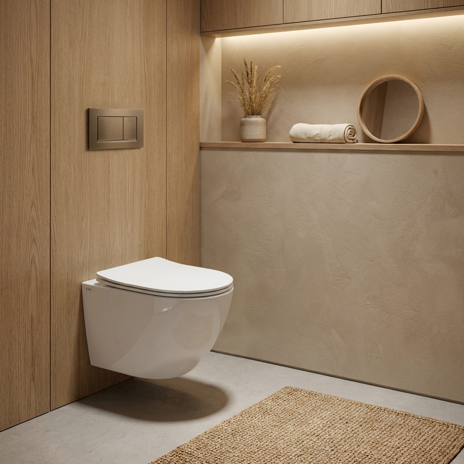 InBe 3 wandtoilet, 49 cm, met toiletzitting met deksel (3cm), soft-closing en quick release systeem, glanzend wit keramiek. Bevestiging inbegrepen. TÜV geprüft.
