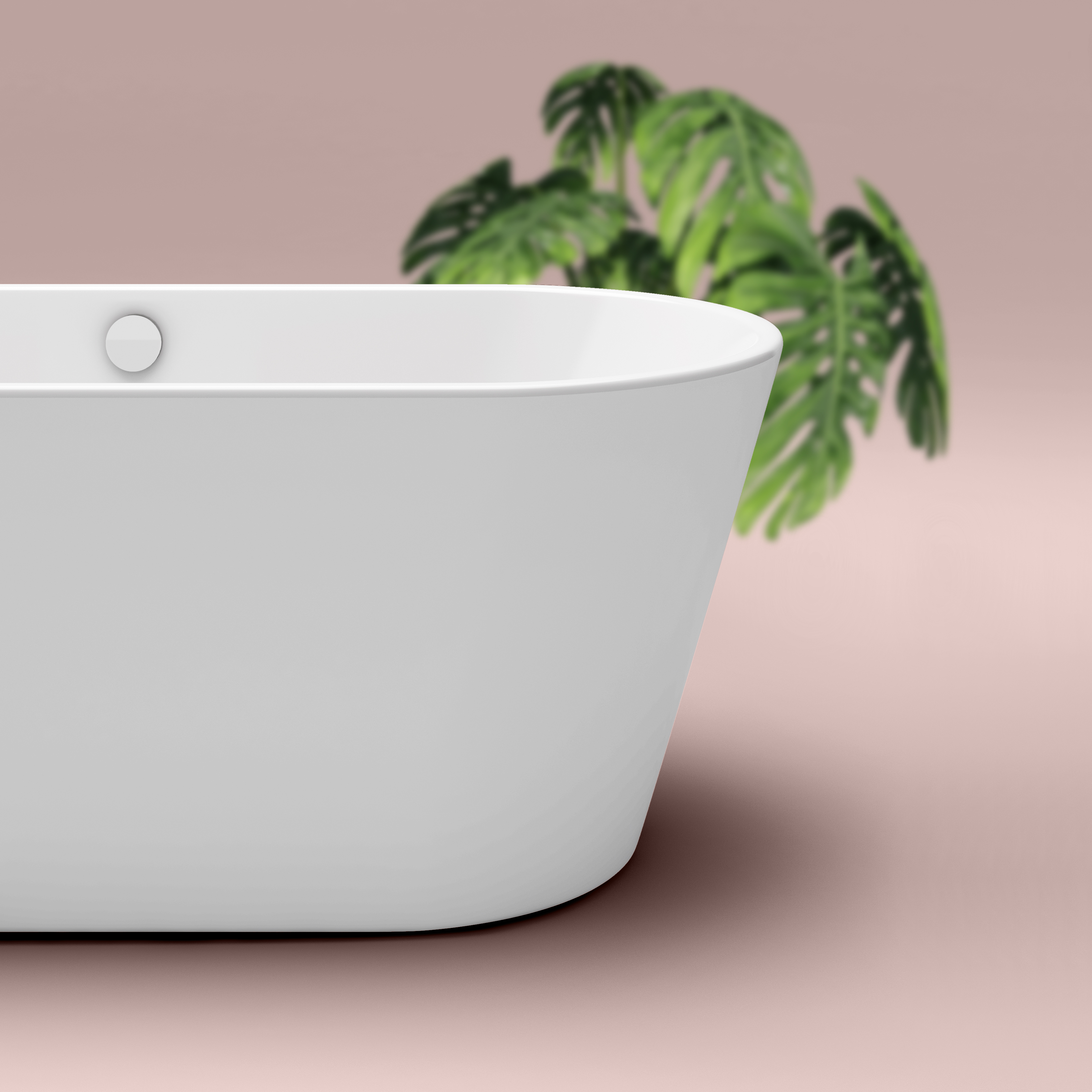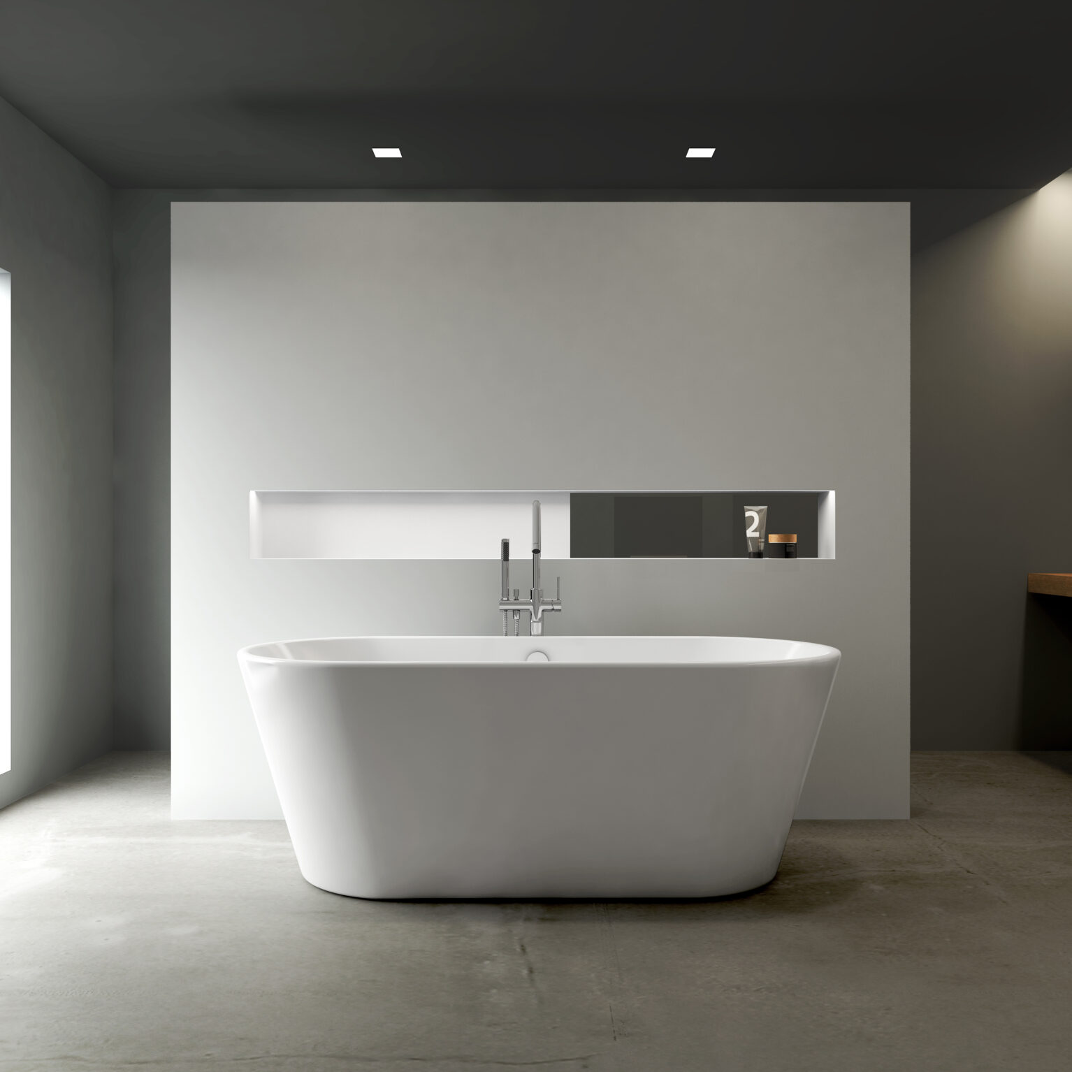 InBe vrijstaand ligbad, ovaal, wit acryl, met glanzend witte plug en overloop