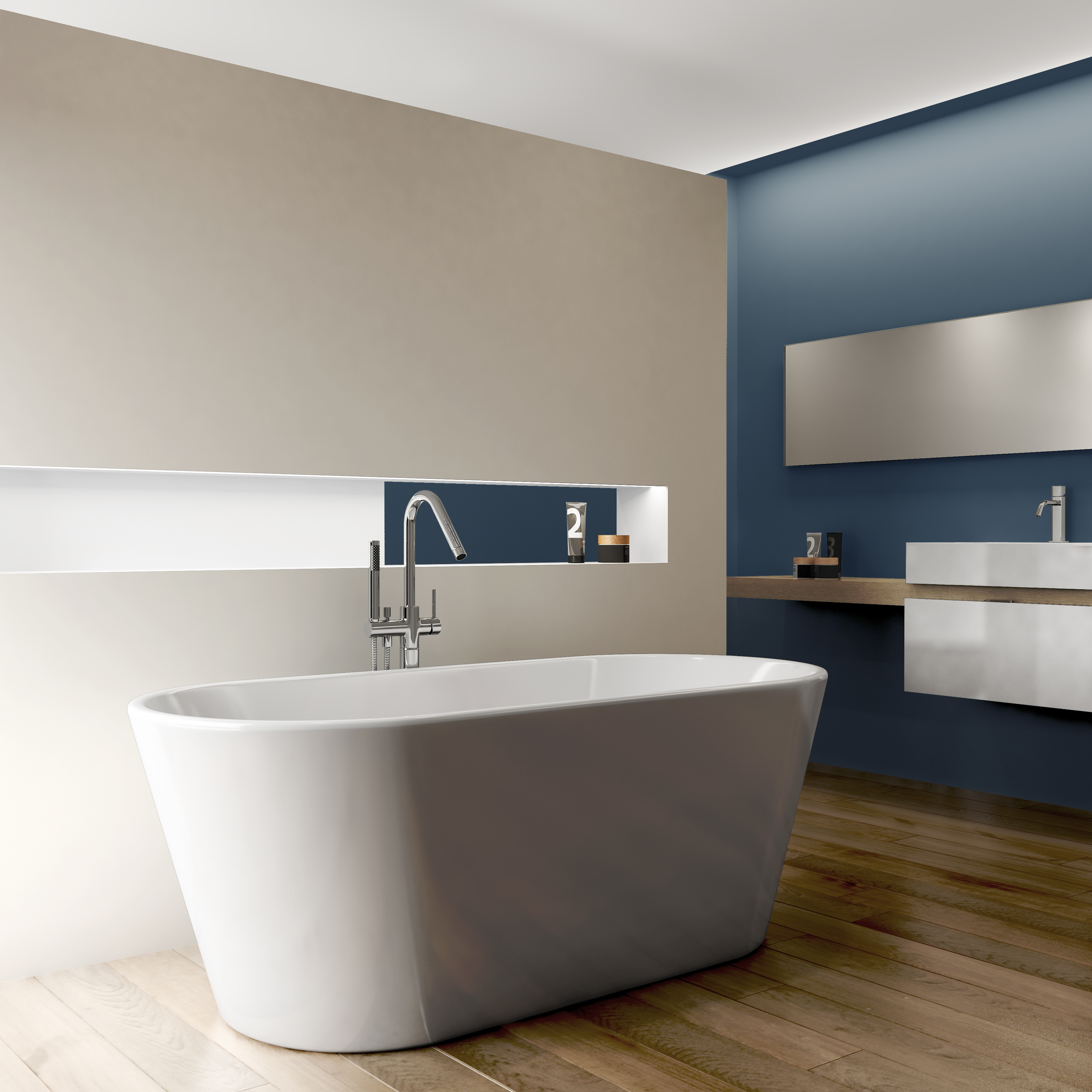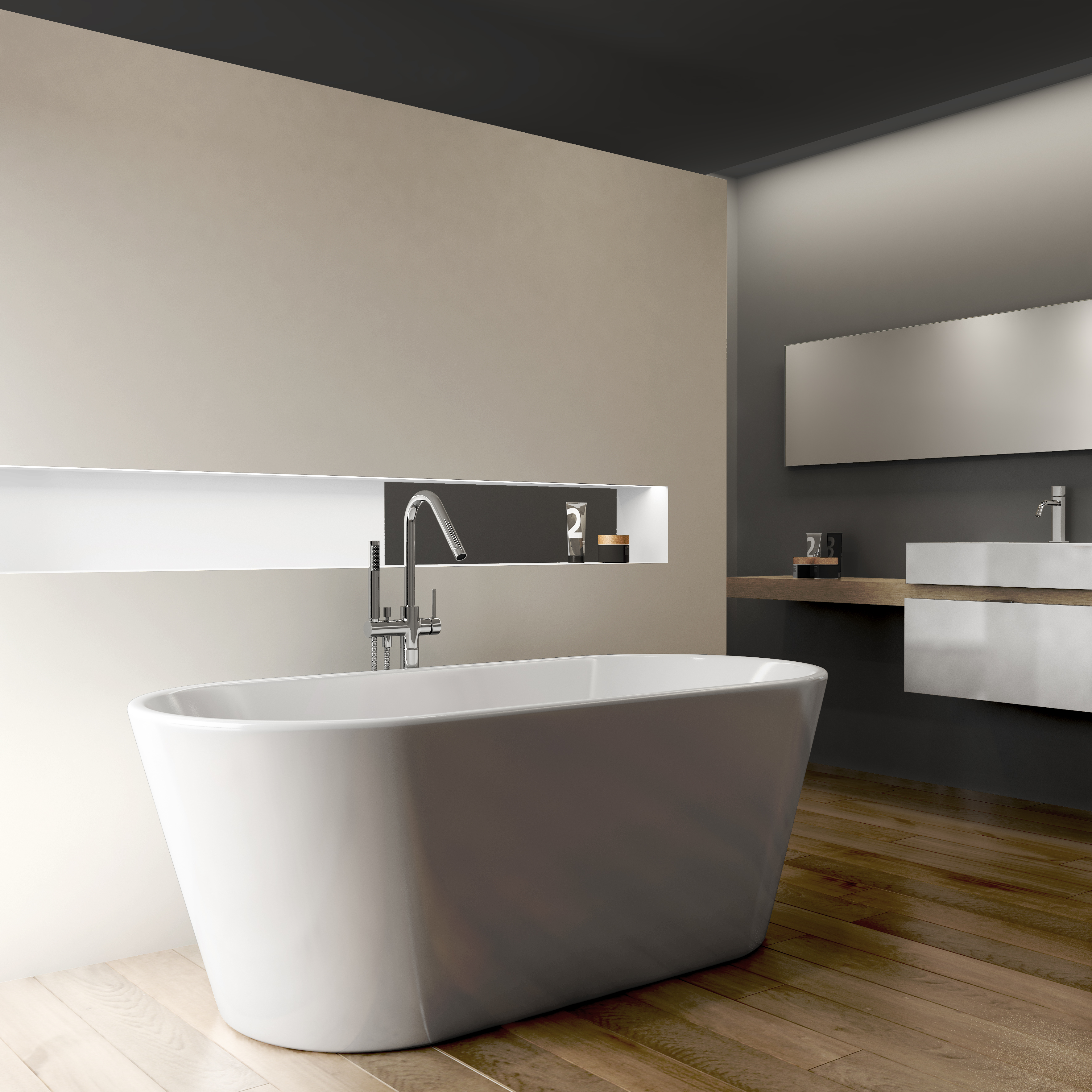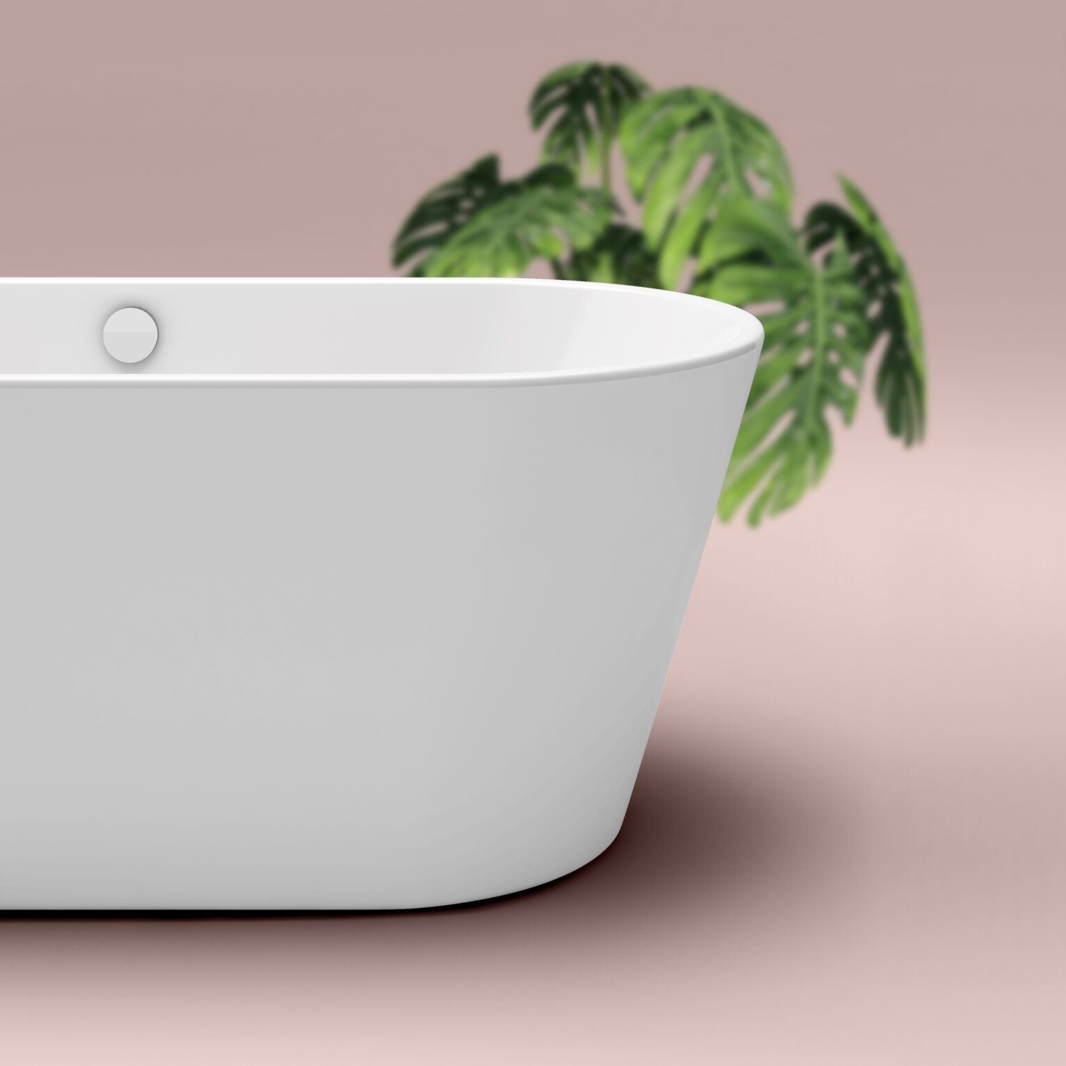 Met Viega stop/go plug en overloop, glanzend wit. Inclusief sifon. Gewicht 36kg, inhoud 225l.