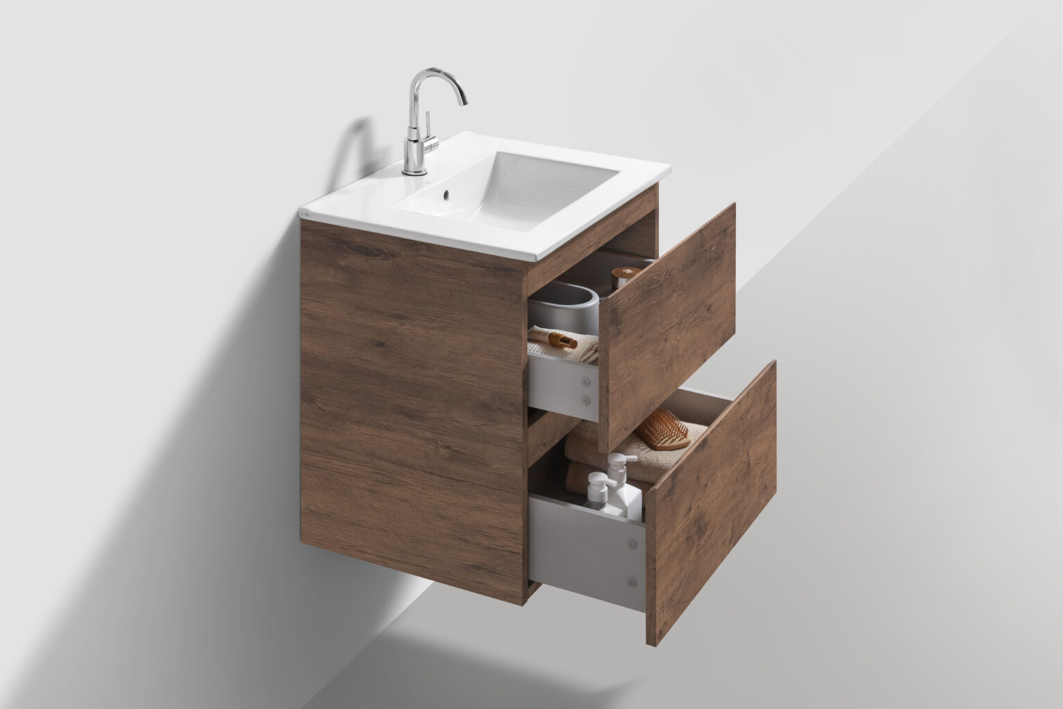 Badkamermeubelset 60cm met wastafel en spiegel, donker eiken